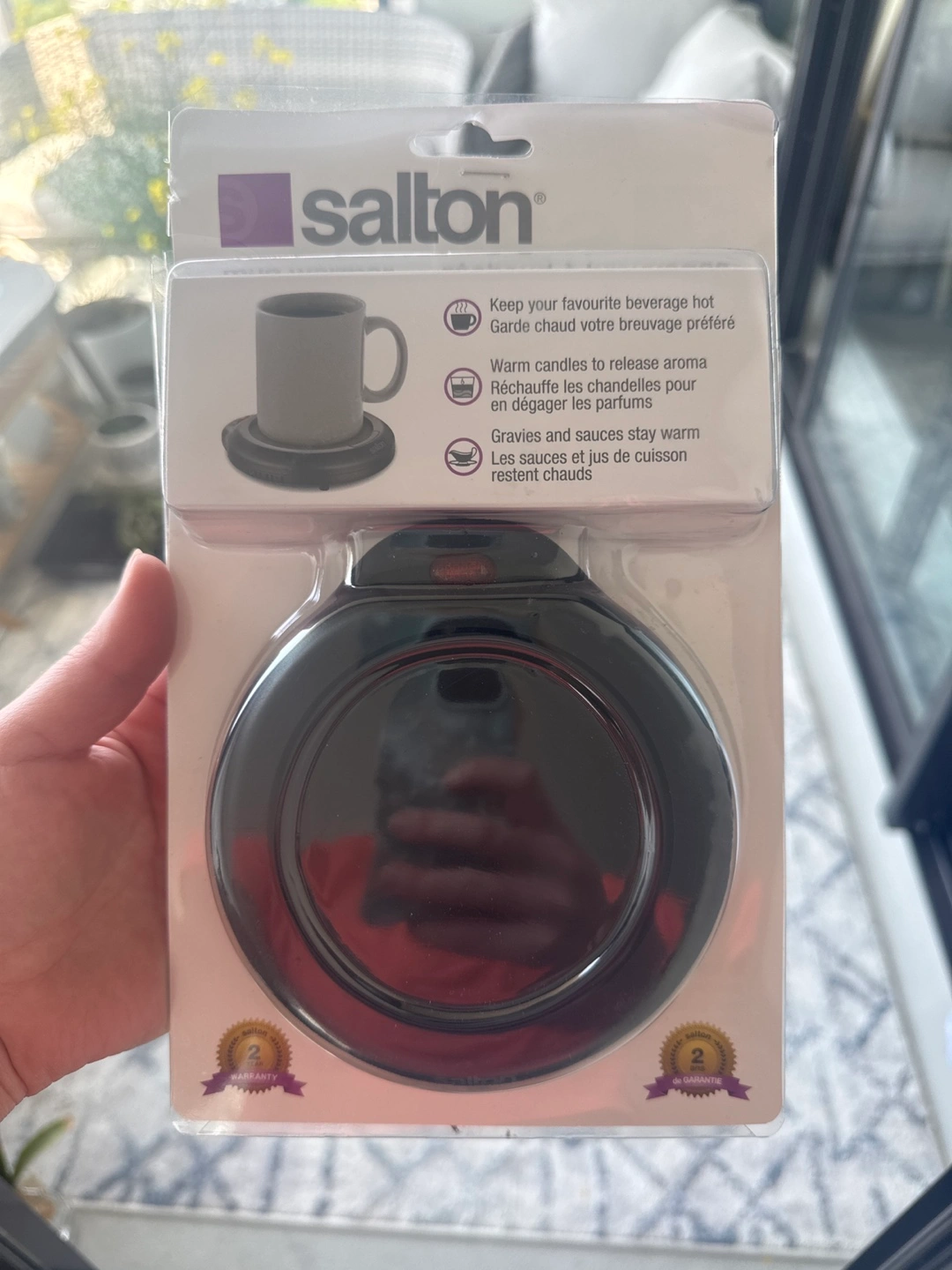 New Salton mug warmer. Keeps beverages at ideal drinking temperature. Safe for home use. Warms candles to release aroma. Keeps gravies and sauces warm.