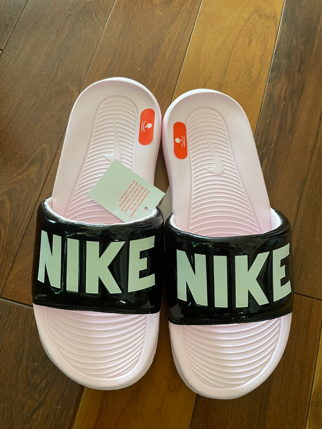 🟣Women's Nike Victori One slides. Black and pink. Size 8.