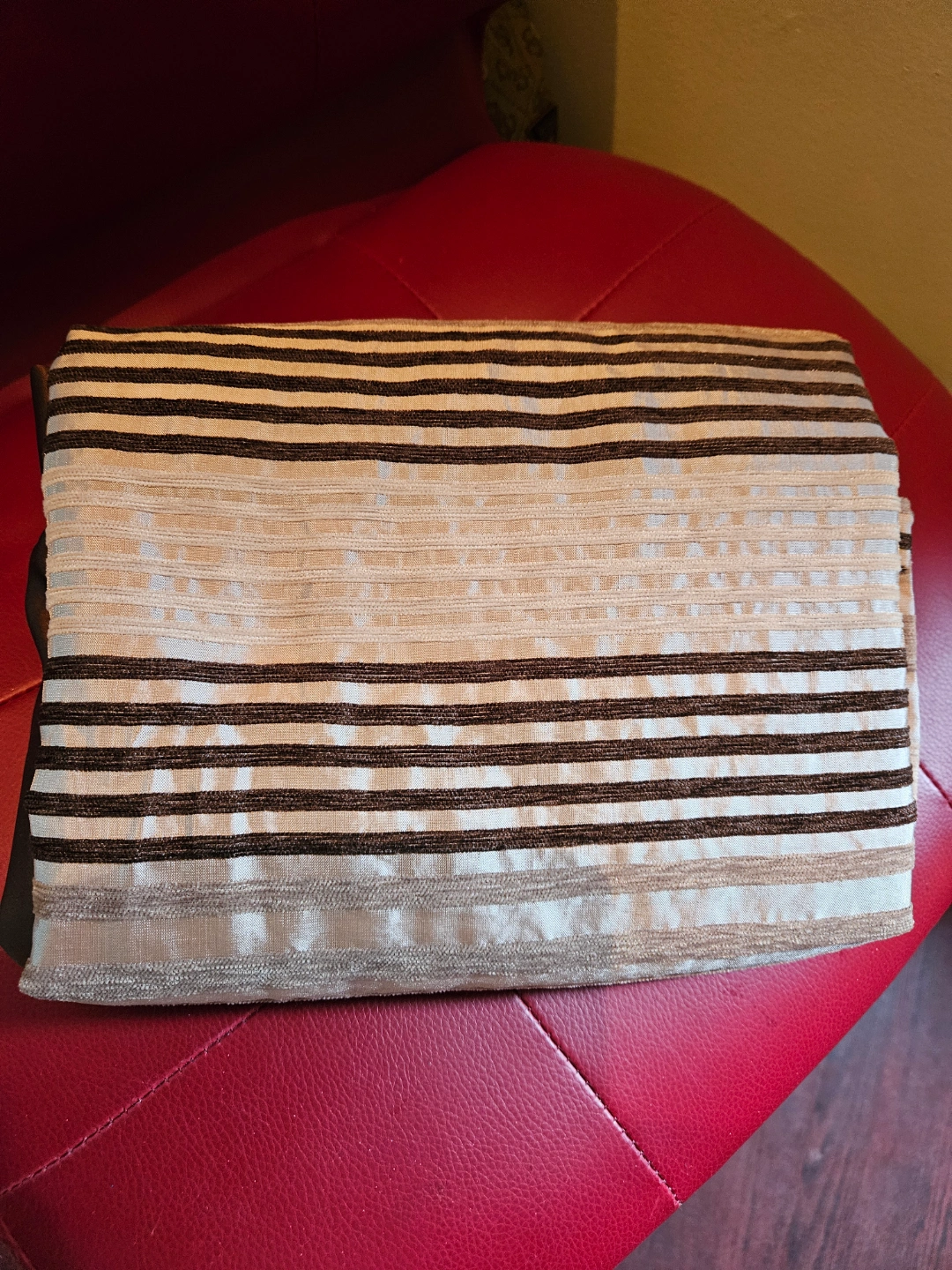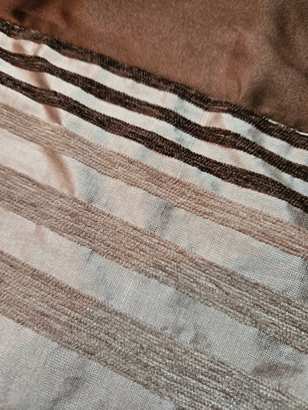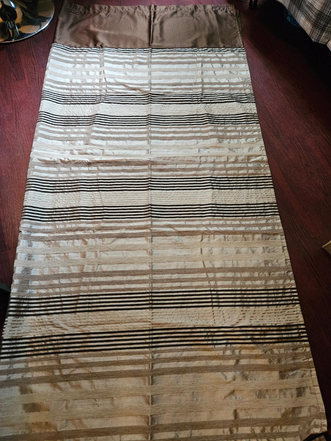 Used just a couole times .Beautiful Shower curtain featuring a striped pattern in shades of brown and beige. Neutral colours. Adds a touch of elegance to your bathroom