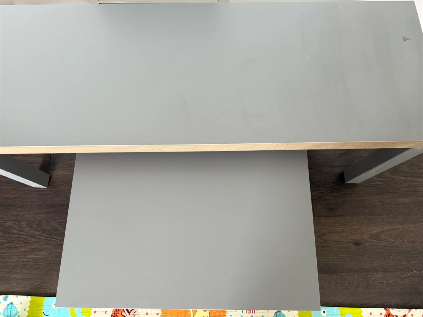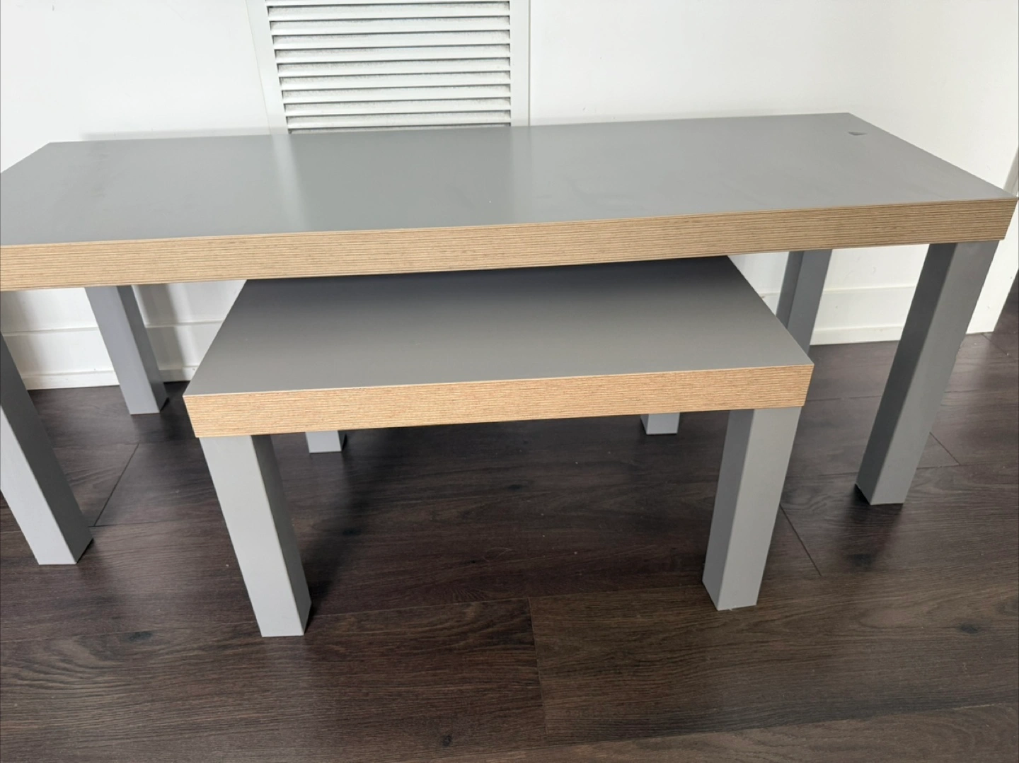 100Limited Edition IKEA Table Set Stylish 2-piece grey & wood combo. Modern, practical, and rare! Minor mark on the big table (see photo), but fully functional. Perfect for living rooms or workspaces. 40cmX 120cm X 45 cm high