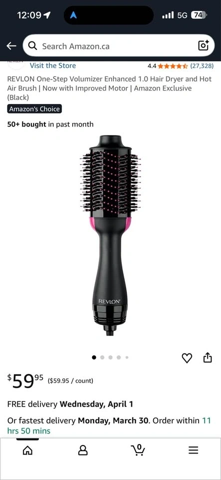 New Revlon hot air brush dries and volumizes hair in one step. This black and pink styling tool has an improved motor for better performance. It is an award winning design that helps with shine and reduces breakage.