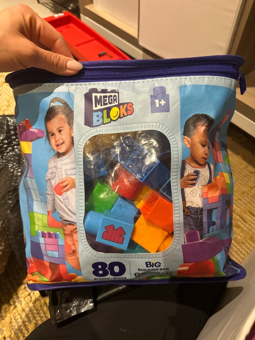 Mega Bloks Big Building Bag with 80 colourful blocks! Perfect for little ones aged 1+ to explore their creativity and build all sorts of fun creations