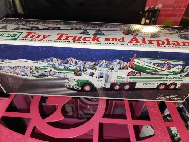 Selling a 2002 Hess Toy Truck and Airplane set. This collectible is in good condition and features real lights. It's new in the original box and has never been played with. If the ad is up, it's still available!