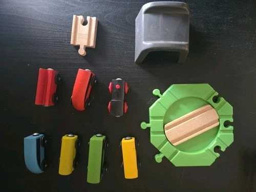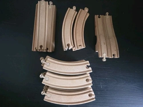 Large mixed lot of IKEA LILLABO wooden train track and accessories, compatible with most major wooden train systems (Brio, Melissa & Doug, Thomas-style wooden tracks). This lot includes a wide variety of straight tracks, curved tracks, switches, intersections, adapters, vehicles, and accessories, with a mix of wooden connectors and plastic connectors. What’s Included: Total pieces: 73 Straight track sections, Curved track sections (various radii), Switch / junction / specialty track pieces, Vehicles (wooden train cars), Plastic accessories (bridge/tunnel style pieces), Mixed wooden & plastic connector styles. All pieces are in great, clean condition. No cracks, breaks, or major damage. Light cosmetic wear only, consistent with gentle play. Perfect for expanding an existing LILLABO set or starting a large custom wooden train layout.