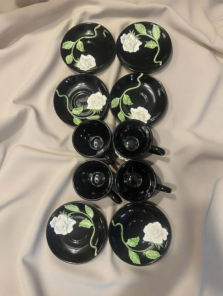 Vintage Fitz & Floyd tea set. 13-piece set includes: teapot, sugar with lid, creamer, 4 cups, and 6 saucers. Excellent condition, no chips or cracks. Never used, only displayed.