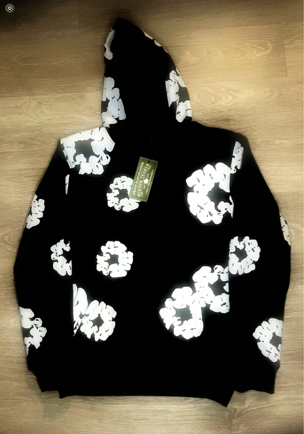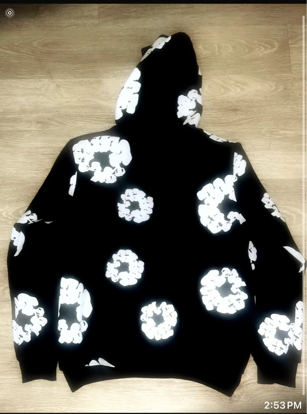 Cool black hoodie with an all-over white floral pattern. It's a pullover style with a hood. This unique piece is sure to stand out!