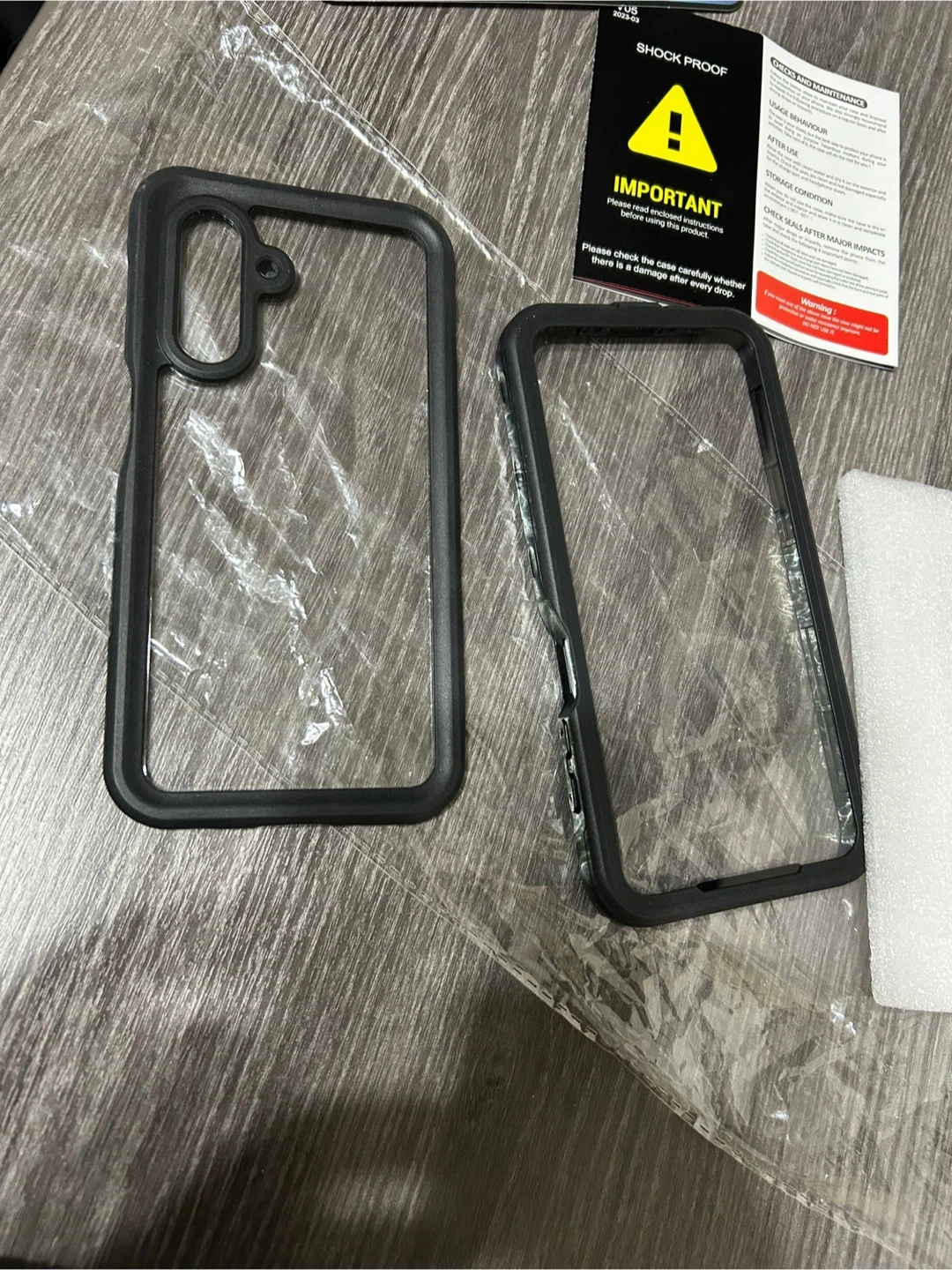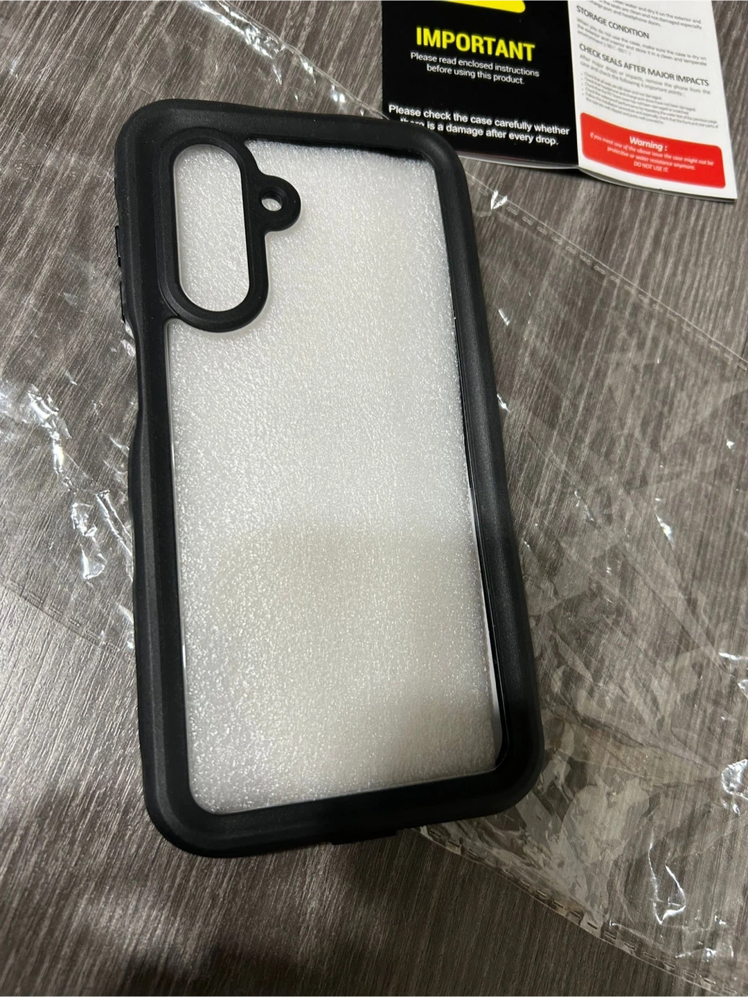 This is a new VRS Design phone case for the Samsung Galaxy A13 5G. It's a shockproof case with a clear back and black bumper. Includes instruction manual. Pick up at Islington /401 / bergamot avenue Etobicoke.