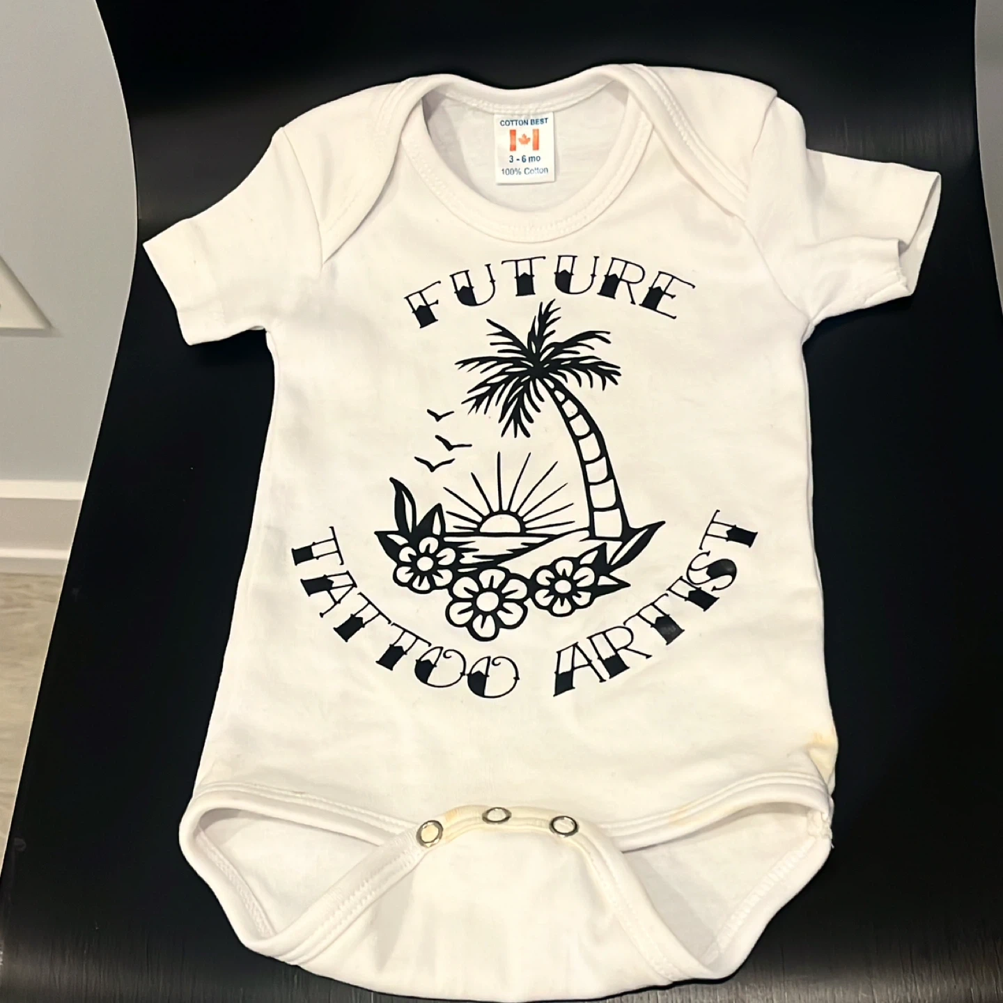White Cotton Best baby onesie with "Future Tattoo Artist" graphic. Size 3-6 months. 100% Cotton.
