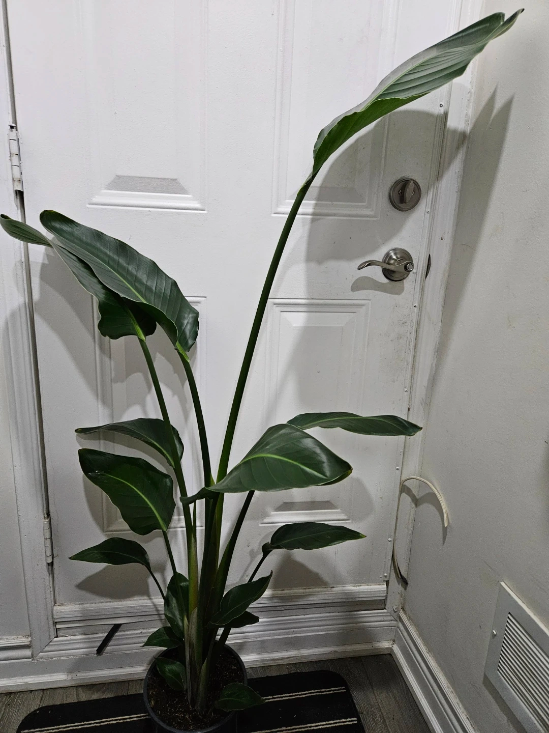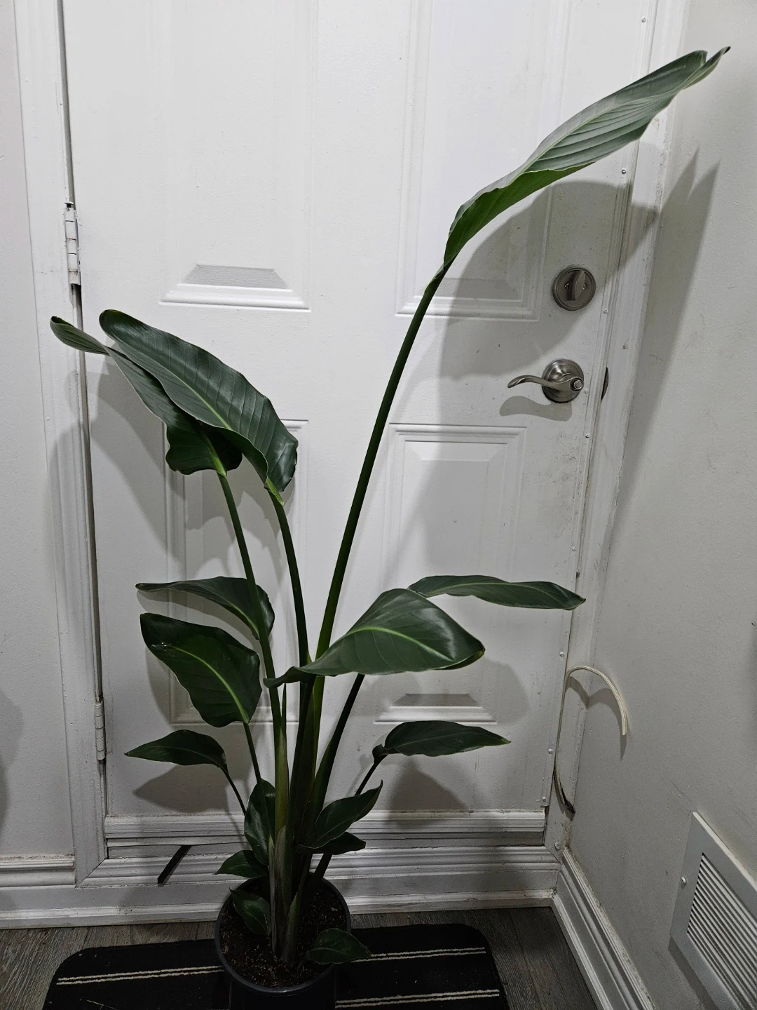 A lush Bird of Paradise plant with large, green leaves. It's a beautiful statement plant for any indoor space. Adds a tropical feel to your home!