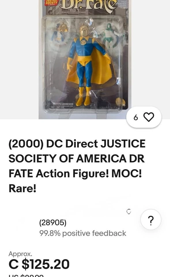 This is a DC Direct Dr. Fate action figure from the "Mages, Mystics & Magicians" line. It is a 6-inch scale action figure and was released in 2000. The figure is part of the Justice Society of America (JSA) series. These figures often sell online for over $100.