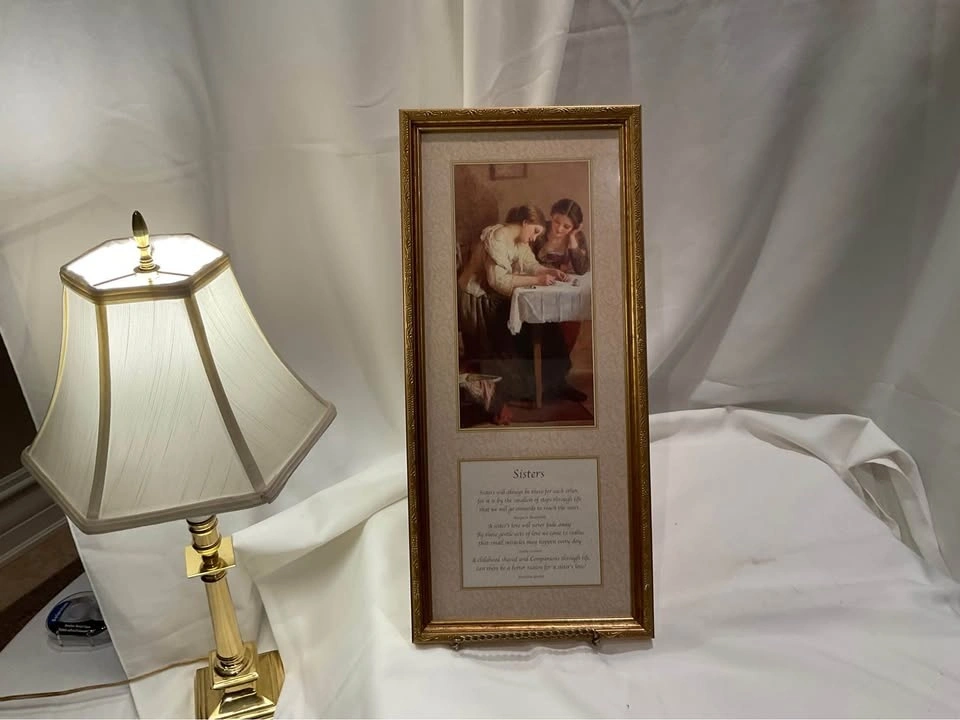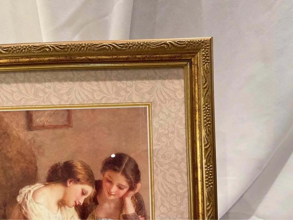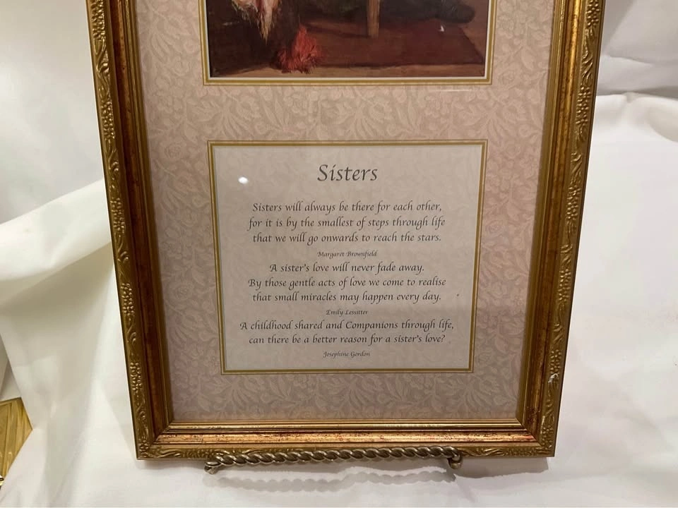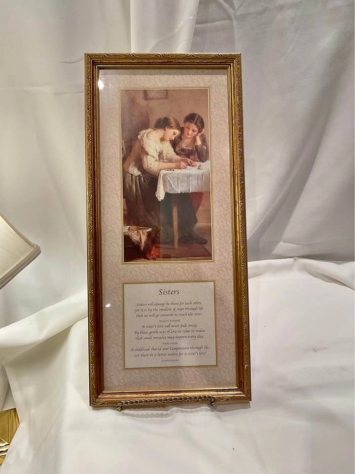 Beautiful print "Sisters" in an ornate frame. Pristine condition. 20" x 9". From a smoke & pet-free home. Located in Richmond Hill (Bathurst & King Rd).