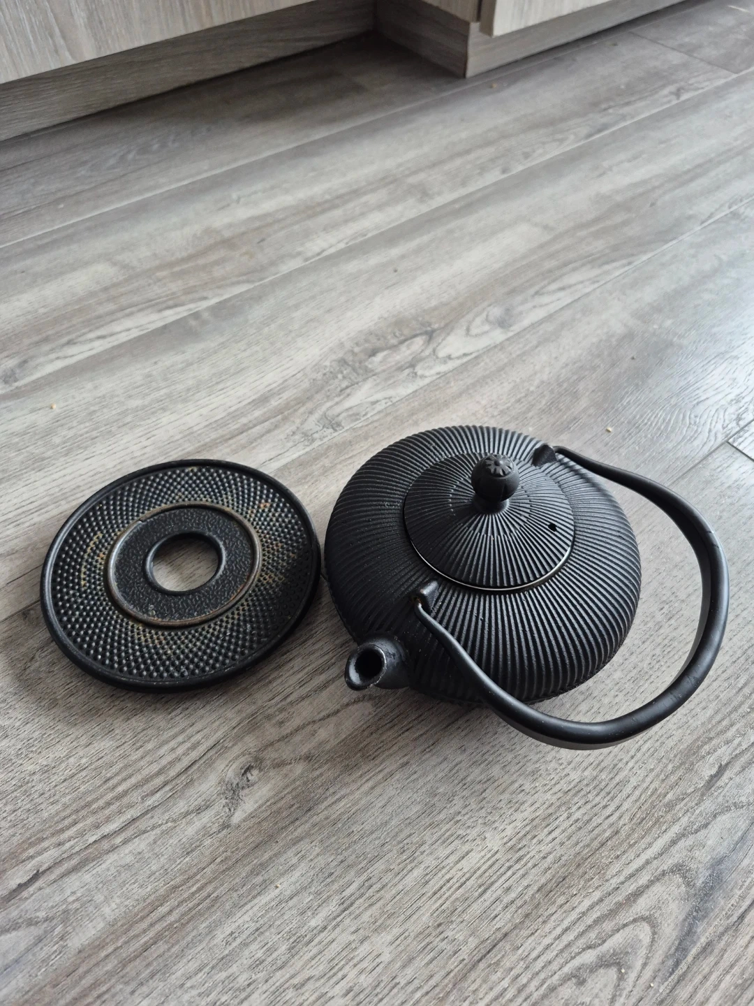 Black Cast Iron Teapot with Strainer
