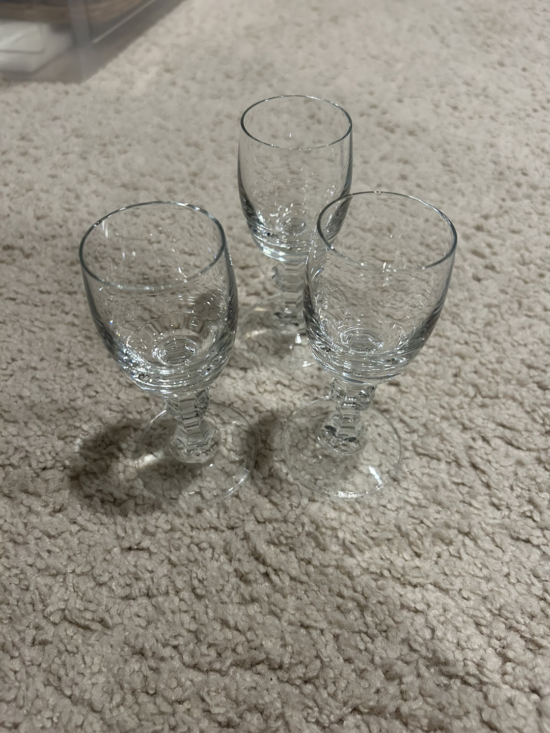 1 / 11 / 1Buy & SellSet of Three Crystal Shot GlassesSet of Three Crystal Shot Glasses$5Three elegant, clear crystal shot glasses. Unique, textured stems. Perfect for serving liquors or cocktails.WHERE TO MEETCheck LocationView MapSELLERverifiedTaniaWest London600 reviews0 chats·0 favorites·6 viewsSEND CHAT TO SELLERHi Tania! I’m interested in your listing.Hi Tania! I’m interested in your listing.Get the Karrot app to chatSign In to chat