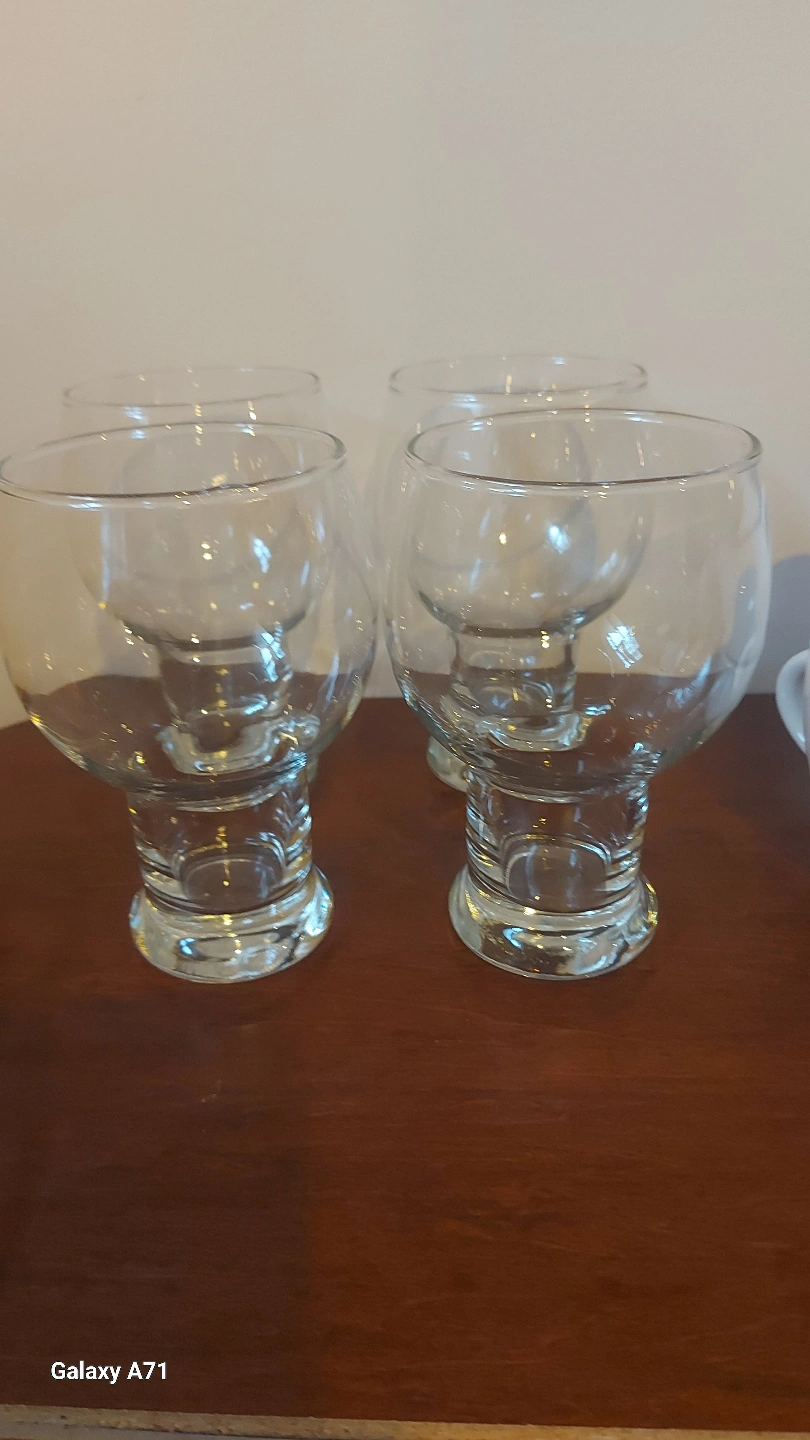 Set of eight glasses, four red and four clear. Elegant design, great for entertaining. Stemmed glasses, perfect for wine or other beverages. $10 EACH SET OF 4 .