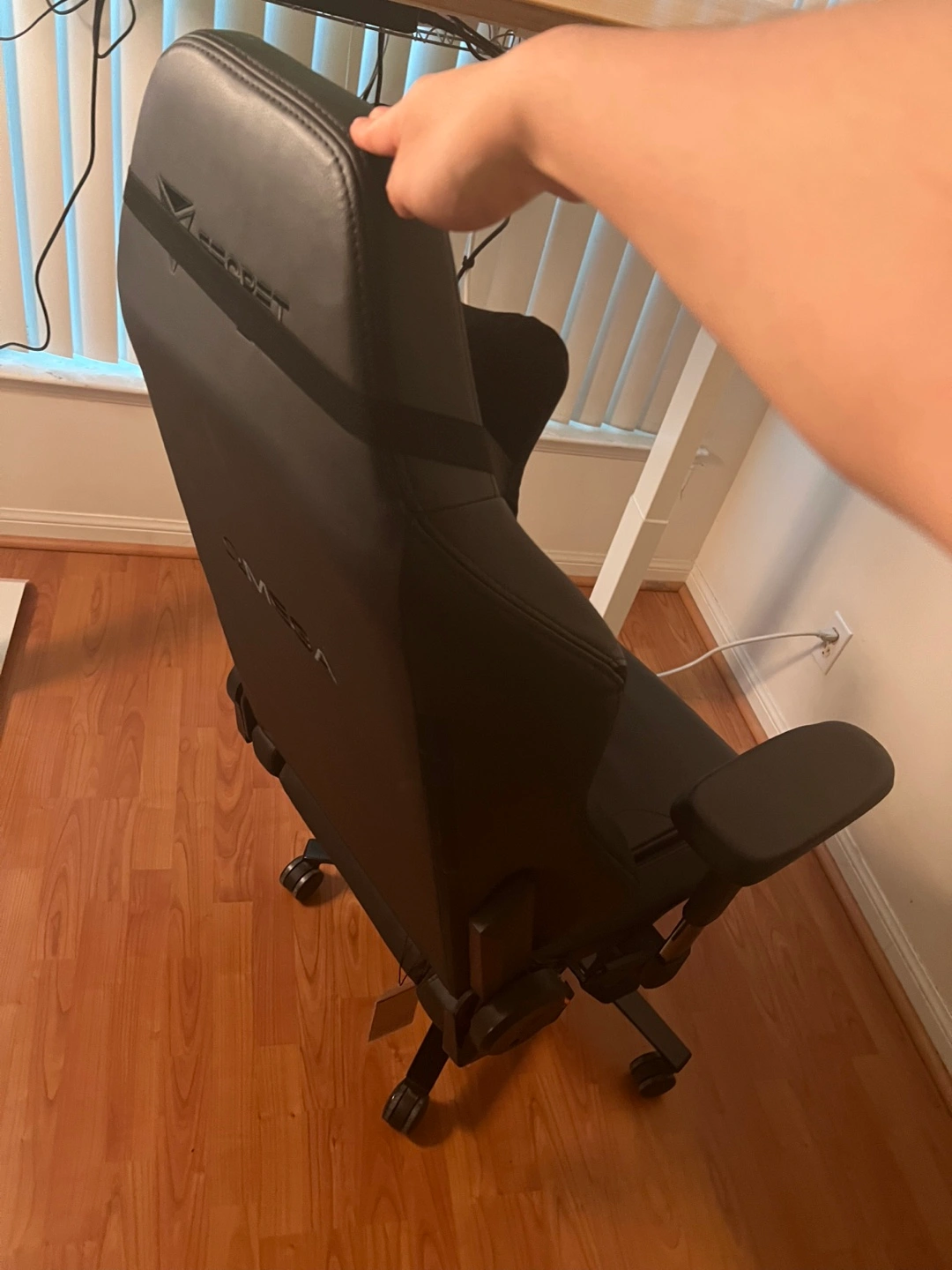 Comfortable and supportive gaming chair. Black PU leather. Adjustable armrests. Head and lumbar pillows included.