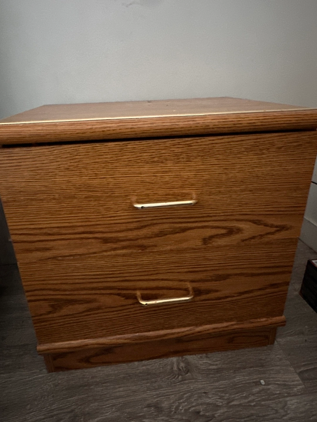 “MOVING” Two-Drawer Wooden Nightstand. #freecycle