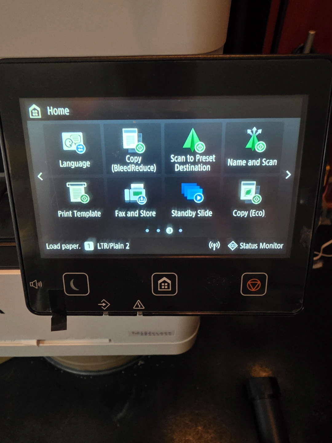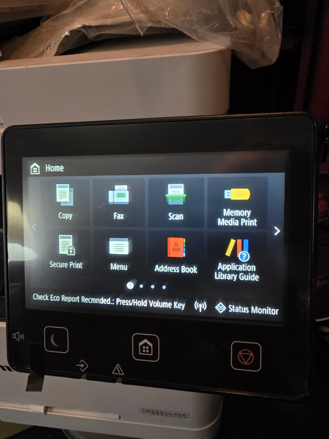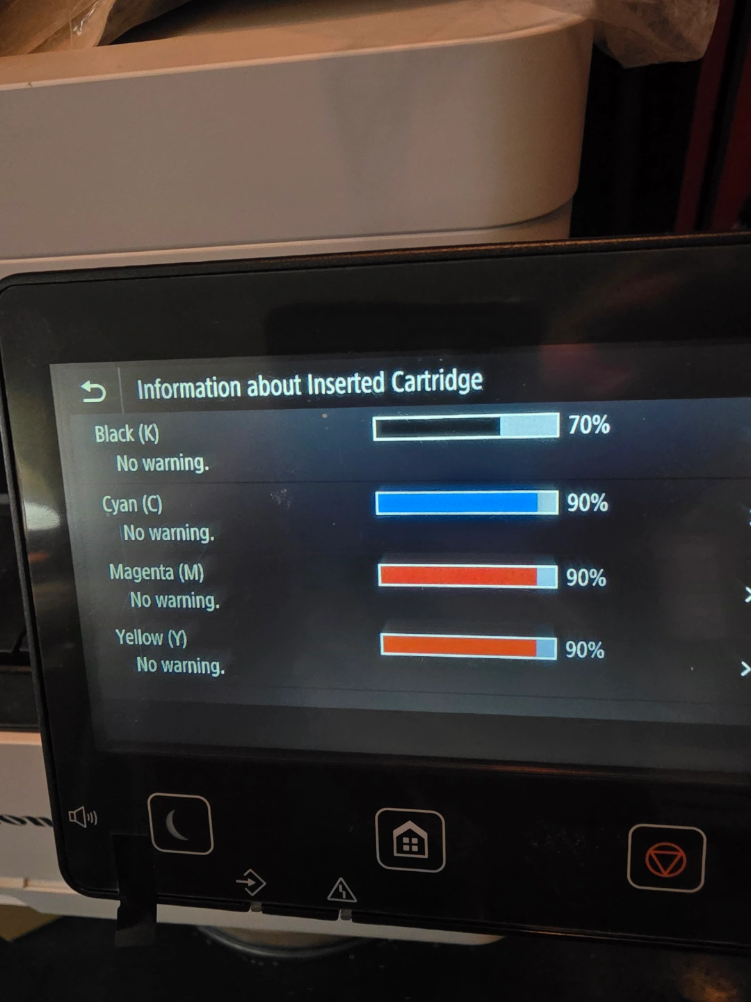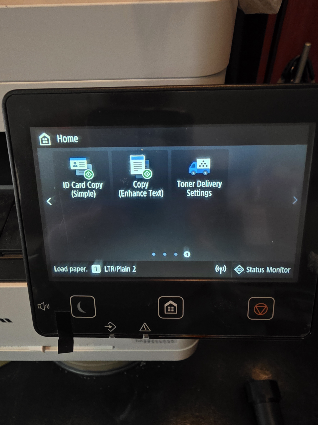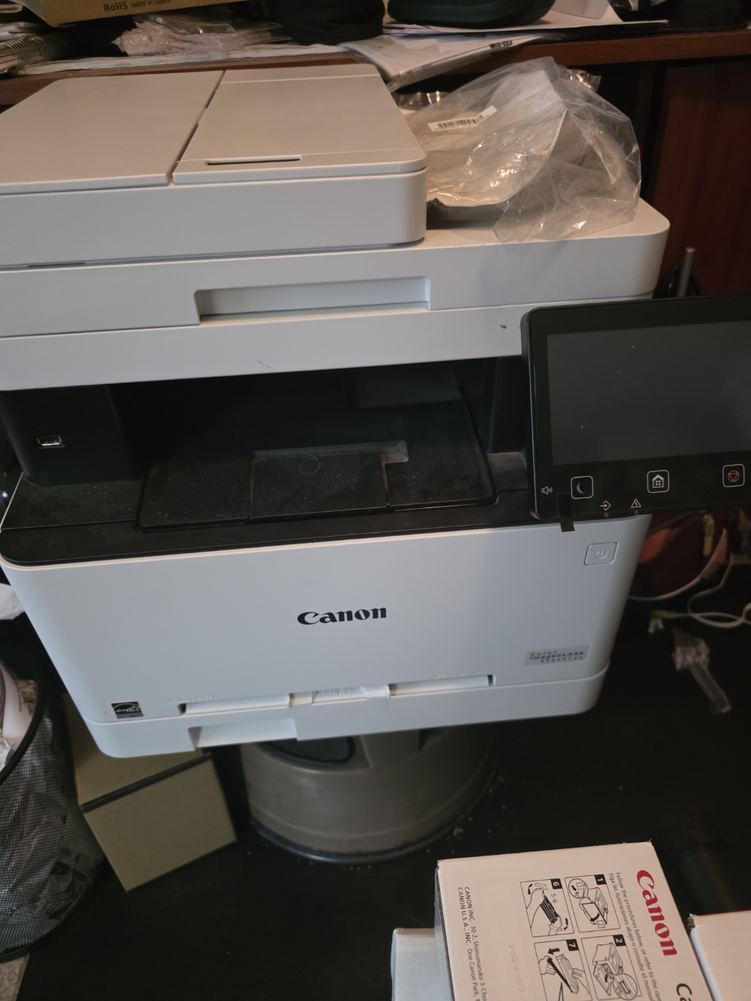 Wireless colour printer, scanner, copier, and fax machine. Includes touchscreen display. Good working order. Some minor wear. high yield toner lots of life left.