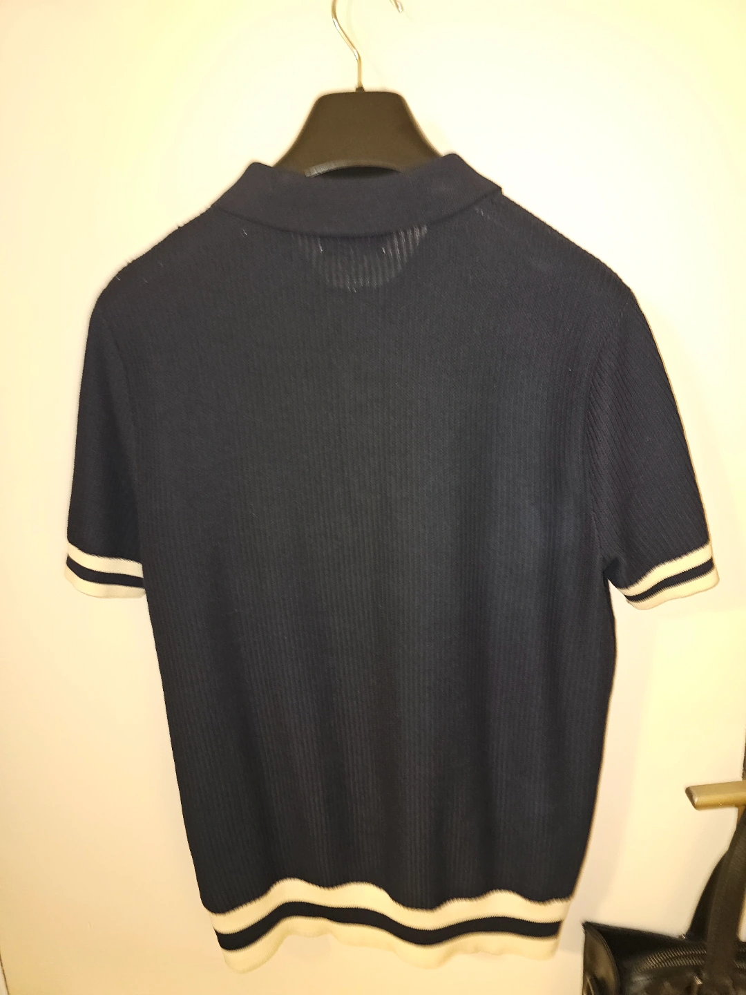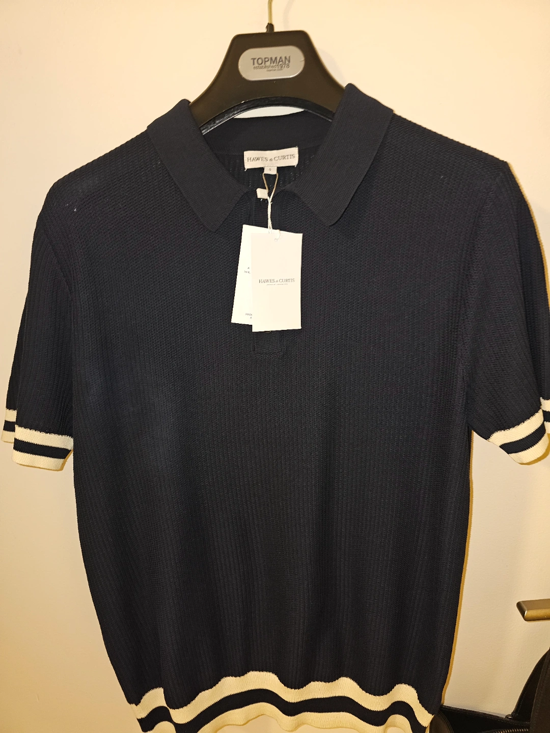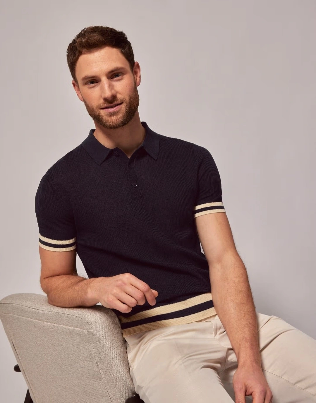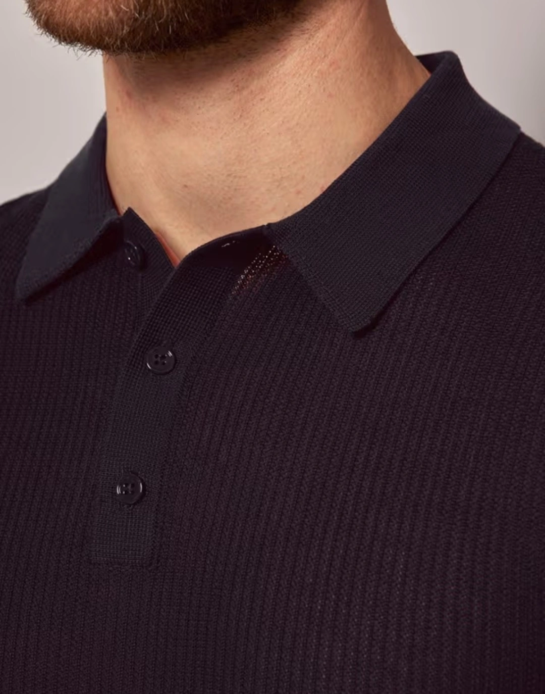 Hawes&Curtis Navy Tipped Textured Rib Knitted Cotton Polo Shirt