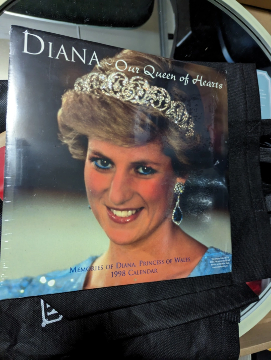 Vintage calendar featuring Princess Diana. Images throughout. Collectible item for royal fans.