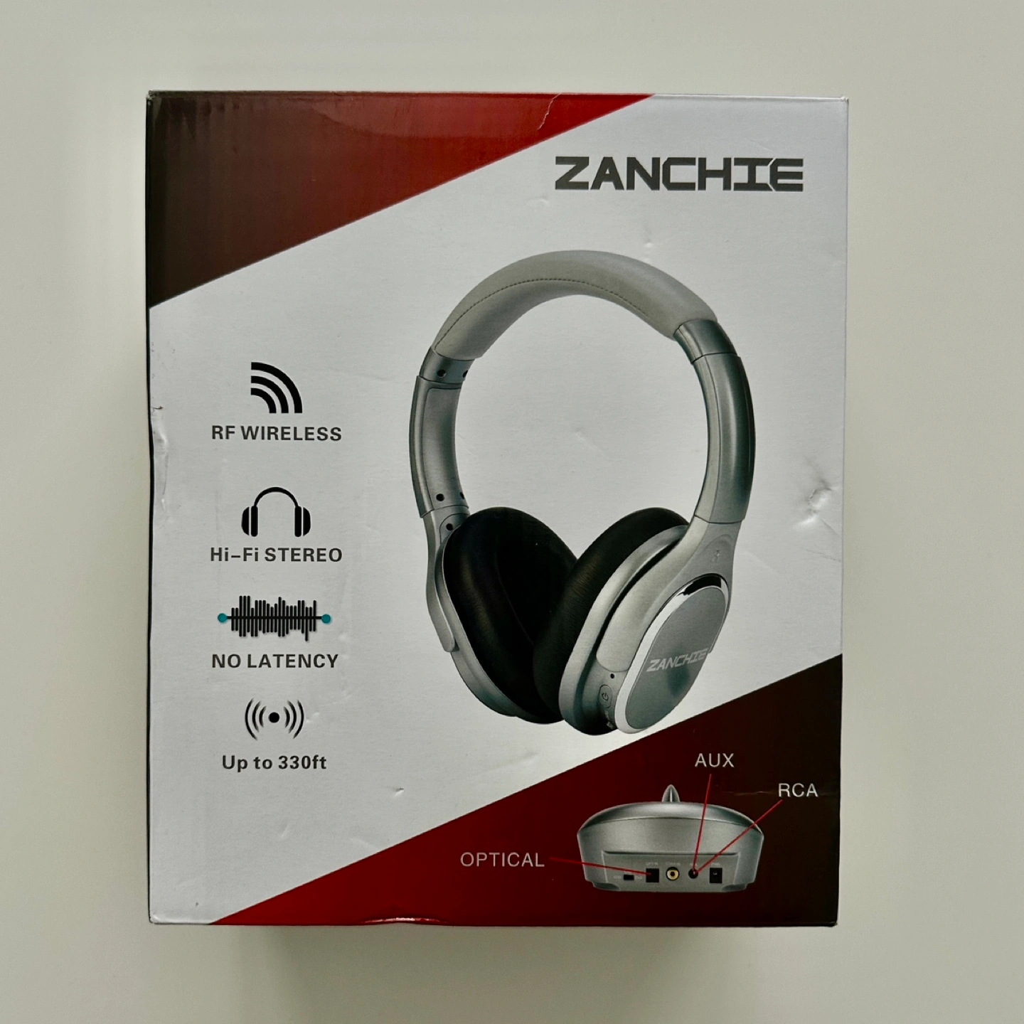 991New ZANCHIE RF wireless headphones. Hi-Fi stereo, no latency. Up to 330ft range. Includes AUX, RCA, and optical inputs. Black colour. Retail price $90 + tax