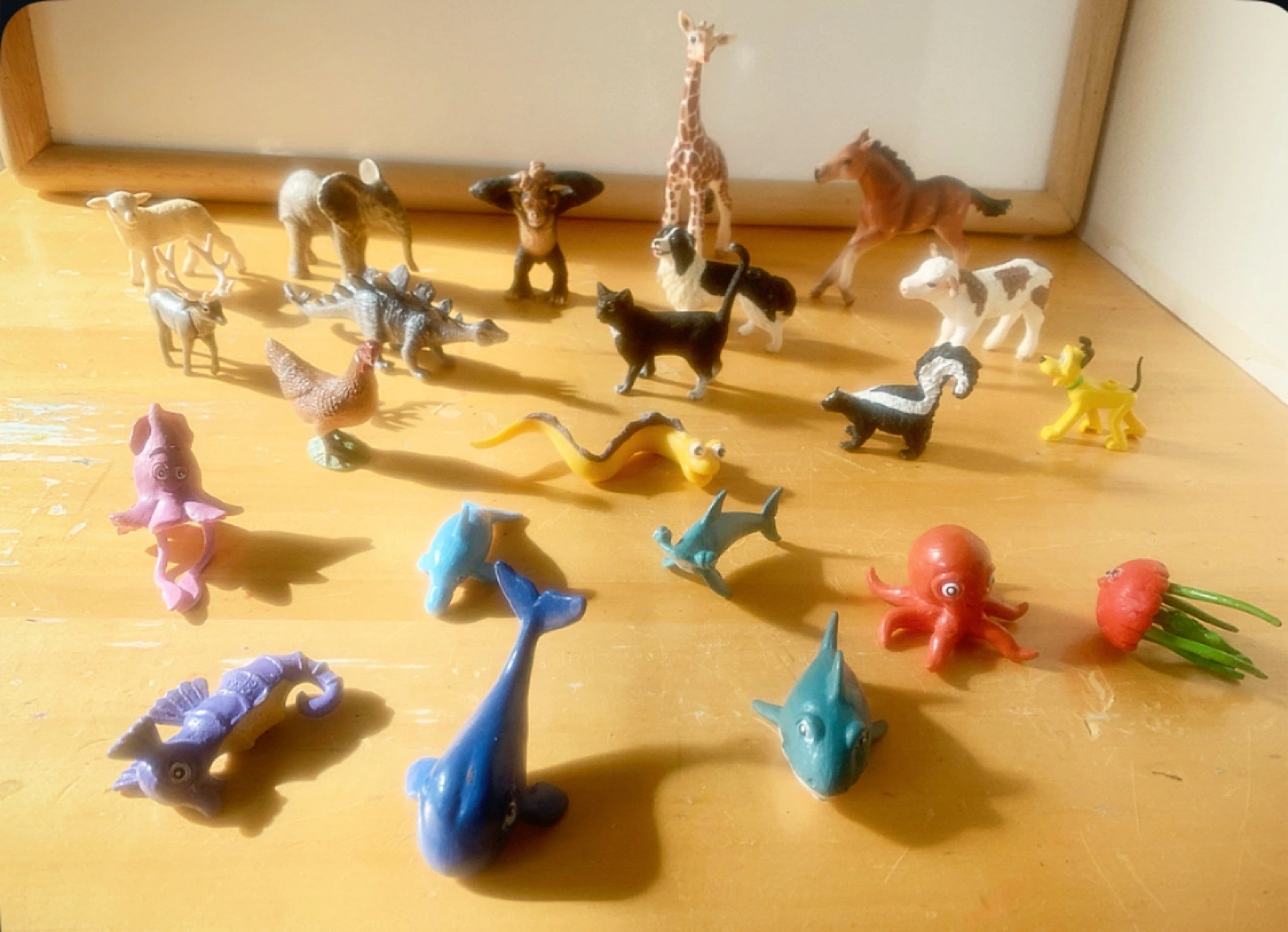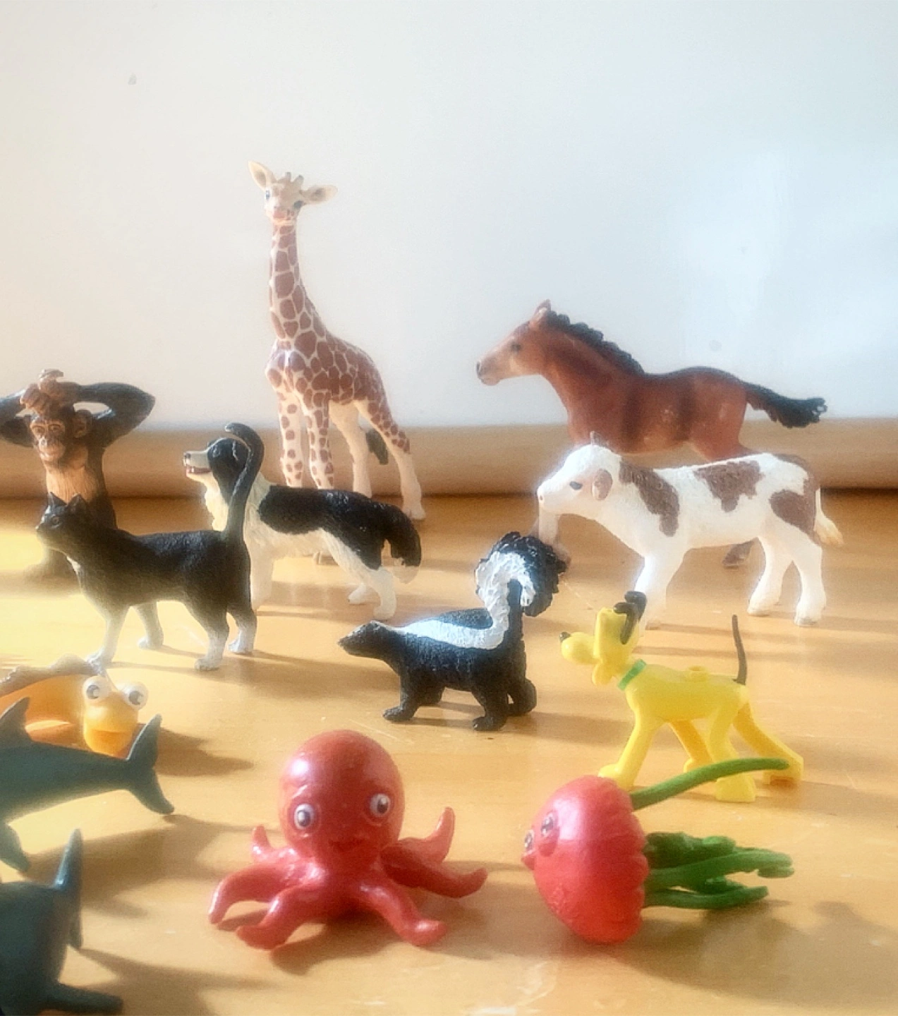 168Variety of plastic animal figurines. Includes farm animals, wild animals, and sea creatures. Good condition. Perfect for imaginative play. 22 pieces. Pick up at Eglinton Ave east at Bayview.