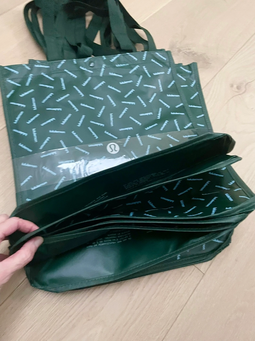 Lululemon Logo Large Tote Bags 14” x 16” Brand New. Never Used. $20 for set of 5.