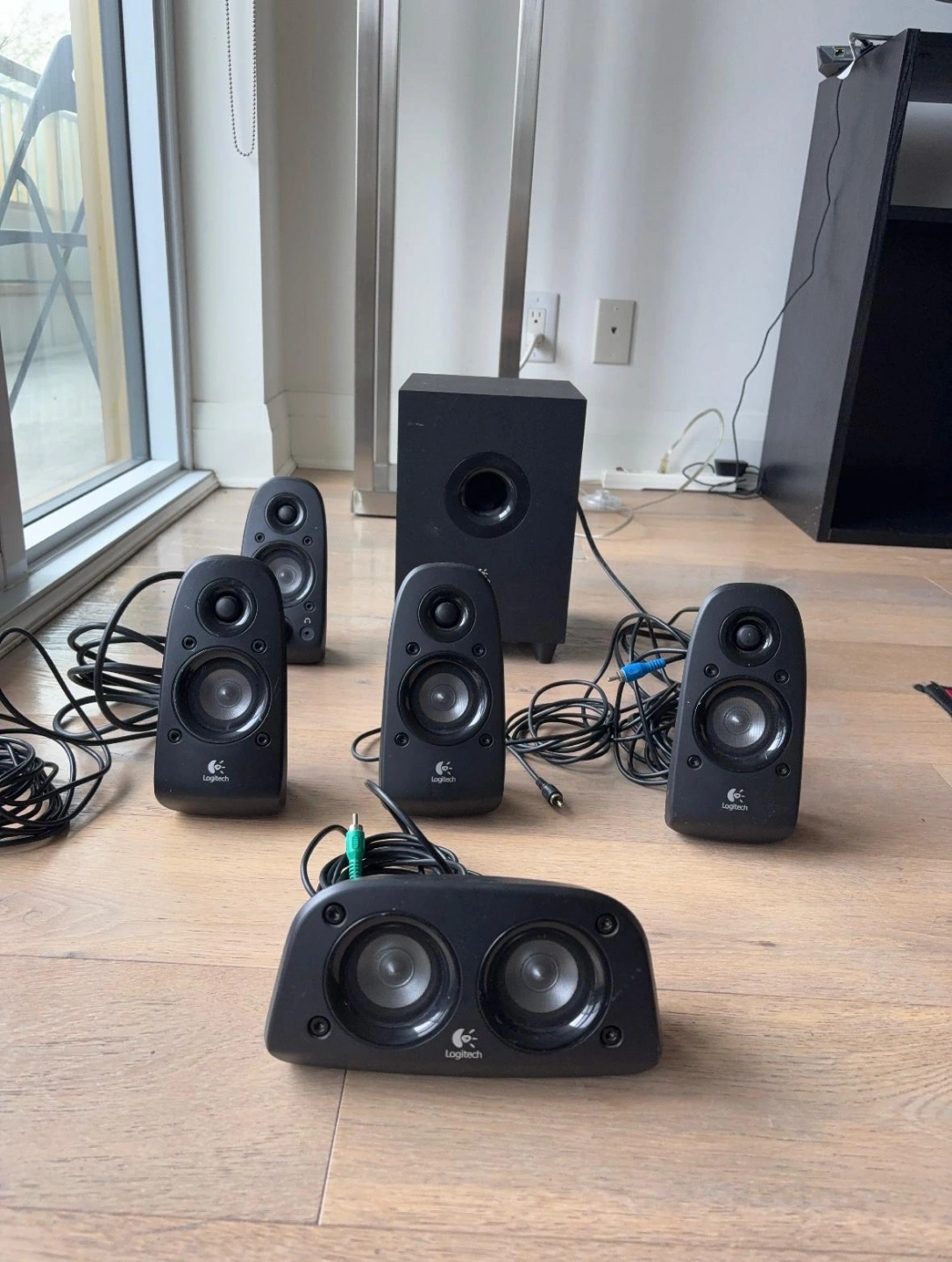 5.1 surround sound speaker system. Five satellites and subwoofer. Black speakers. Good condition.