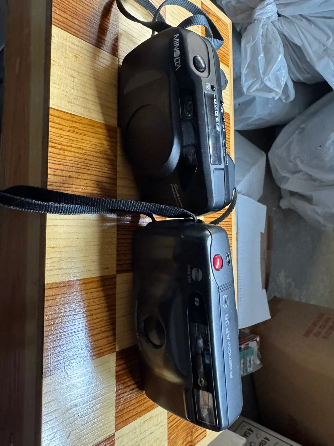 121Two black Minolta Freedom AF35 35mm film cameras. Cameras include straps. Sold as is.