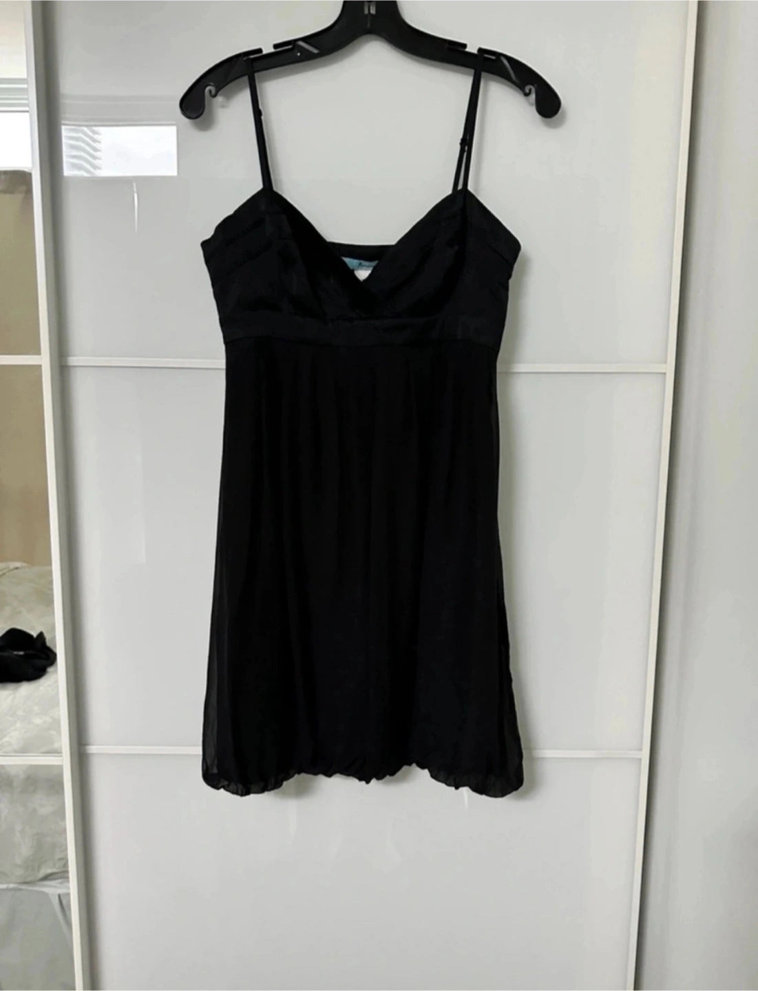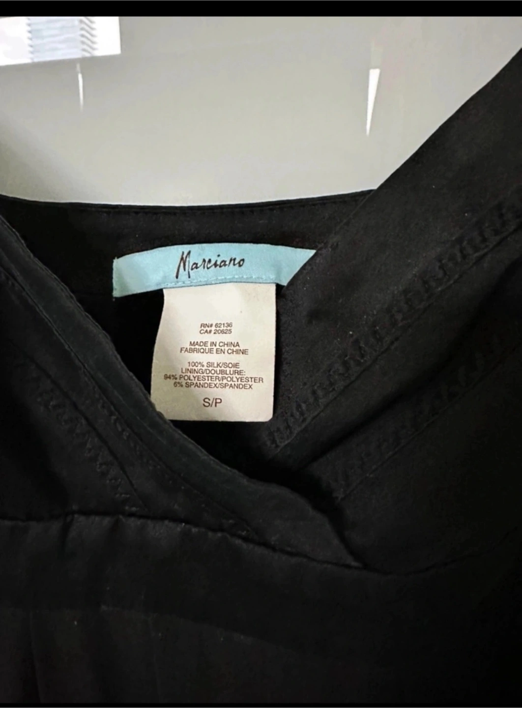 I’m selling a brand new Marciano black silk dress in size small. This gorgeous dress features a sweetheart neckline, adjustable straps, zipper closure on the left side, and lined skirt. It’s in perfect condition and never been worn before. Comes from smoke- and pet-free home.