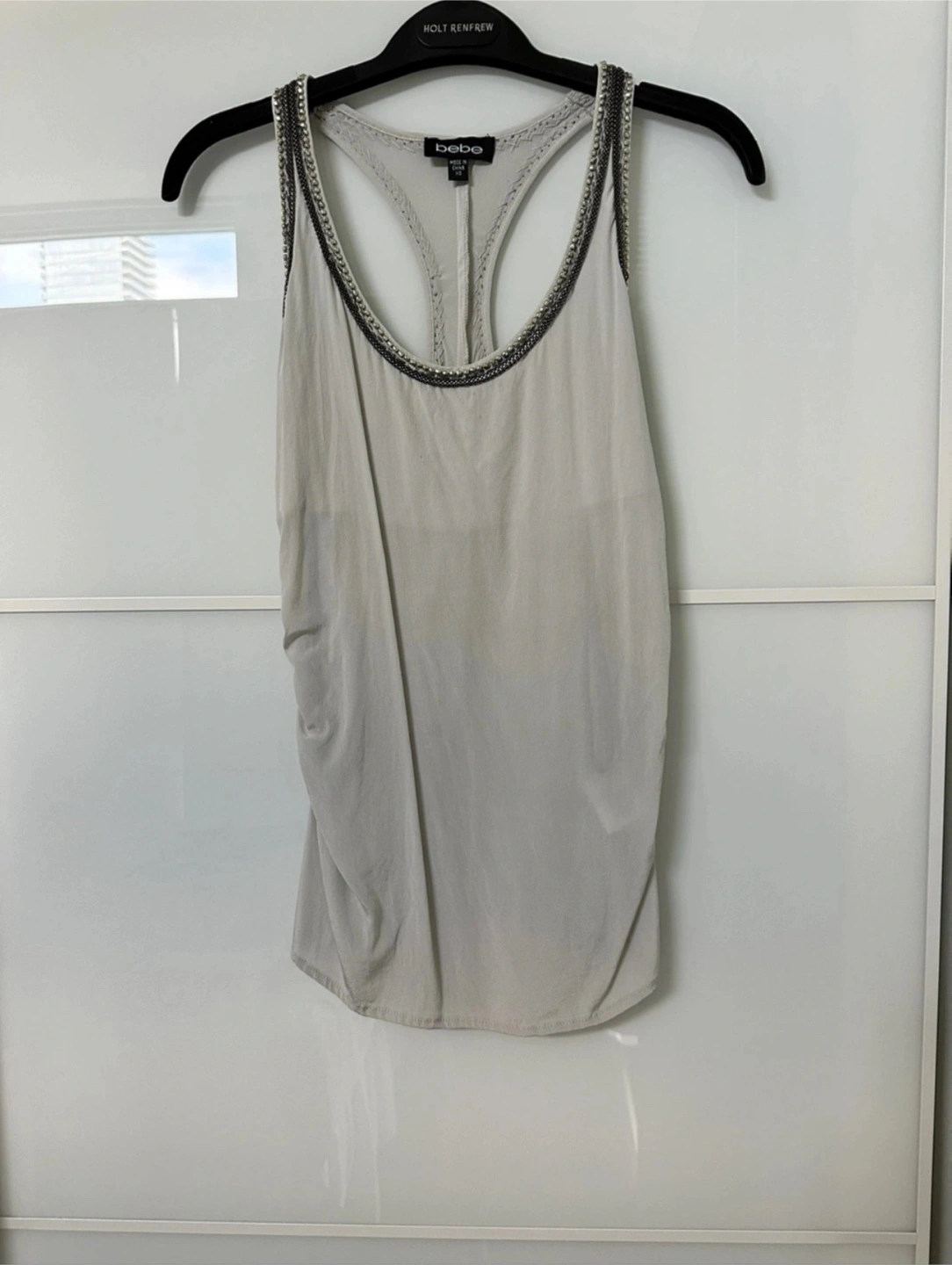I’m selling Bebe silk tank in size XS. It’s brand new and never been worn before.