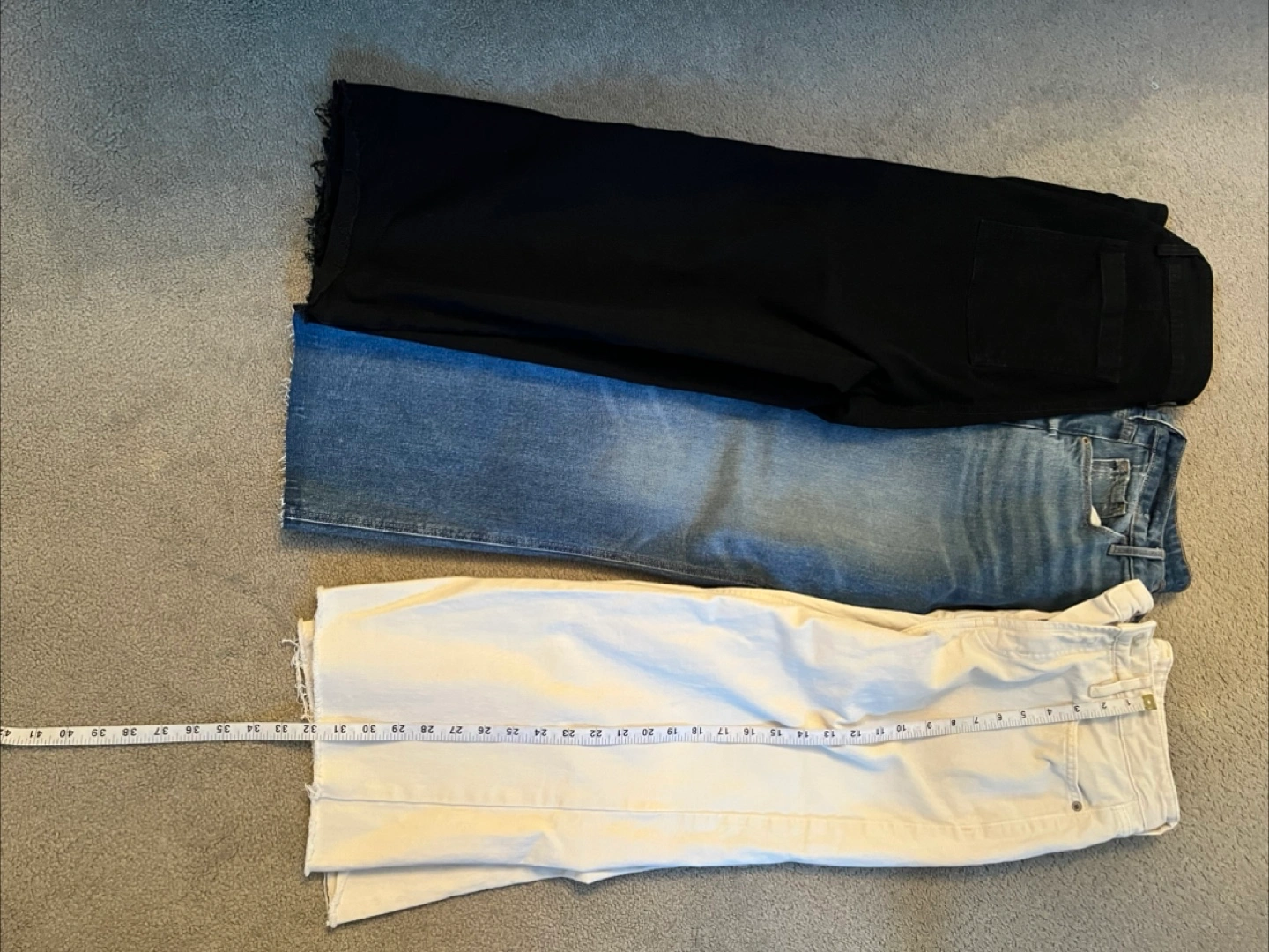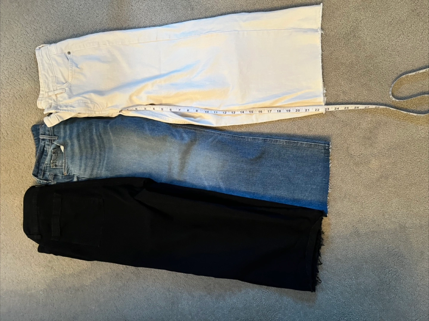 833Bundle of three pairs of women's wide-leg jeans. High waisted and Ankle length. Around 15” waist Old Navy - blue size 8 and off white size 6 H&M - black size 10 Bundle or pick your size Porch pick up only