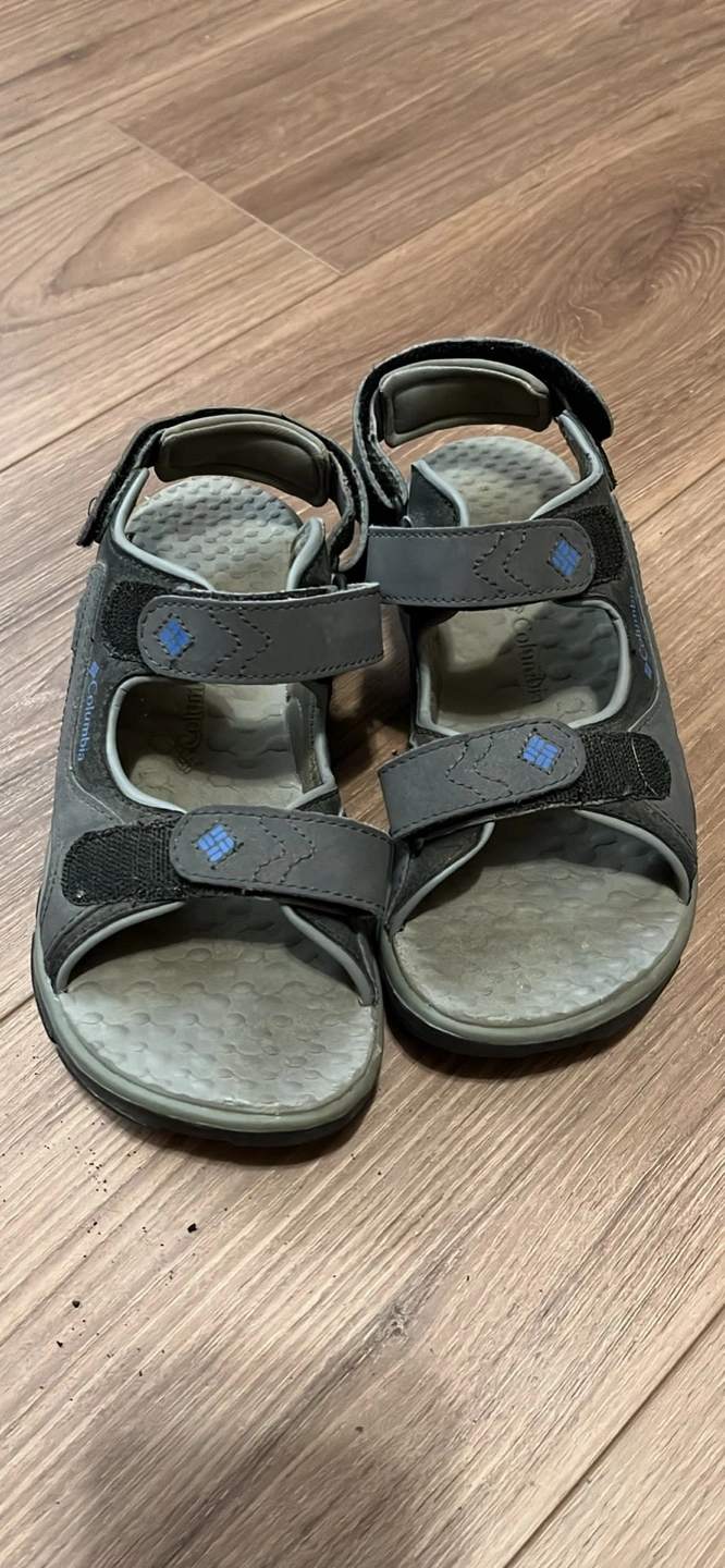 62Pair of Columbia youth sandals. Grey and black. Adjustable straps. Good for summer. Worn but in good condition.