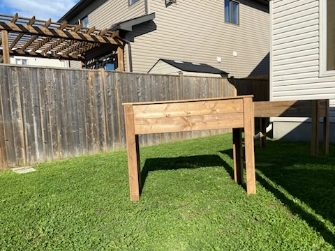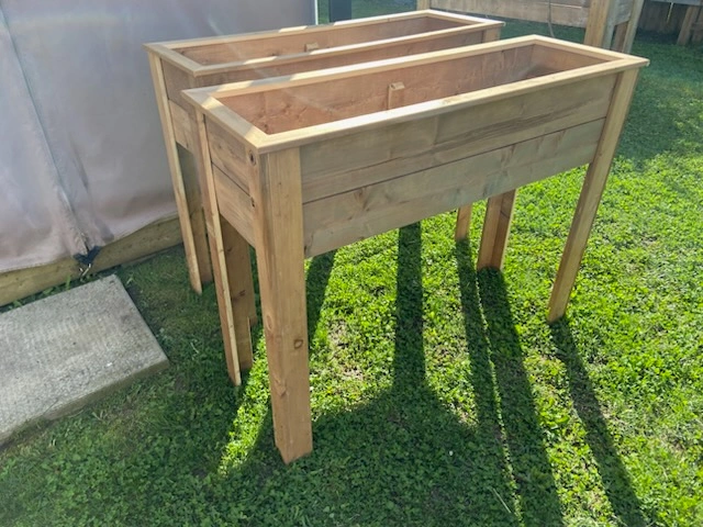 Raised garden planters. Legs for easy access. Ready for planting. Presure treated wood, but can do others at a cost. The top is 16 inches by 46 inches. They stand 36 inches tall. Can do other sizes at a cost.