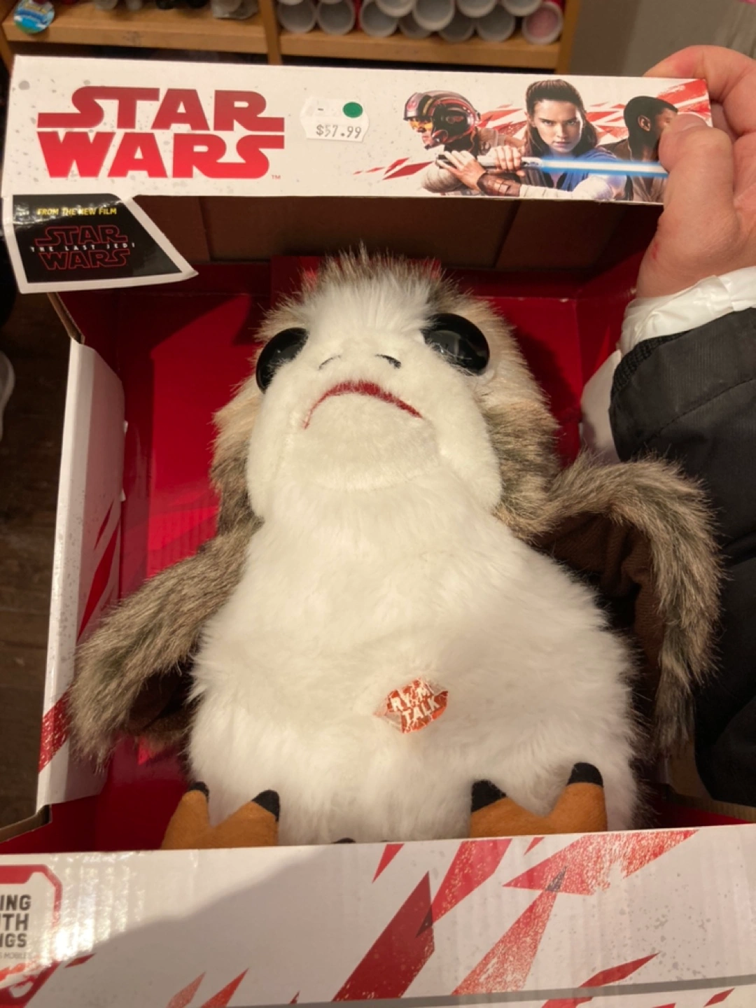 Selling at cost brand new talking Porg Star Wars plushie. May require new batteries as it is an older discontinued collectible item.