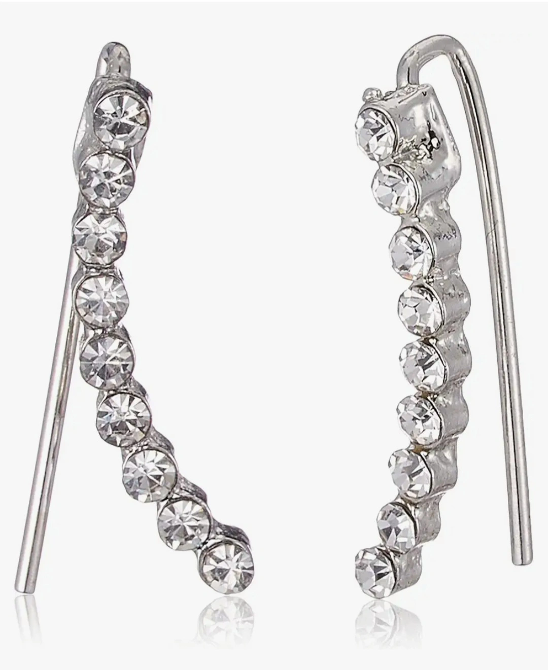 Elegant ear climbers. Silver tone metal. Features clear stones. Beautiful and subtle. It can be worn many different styles.