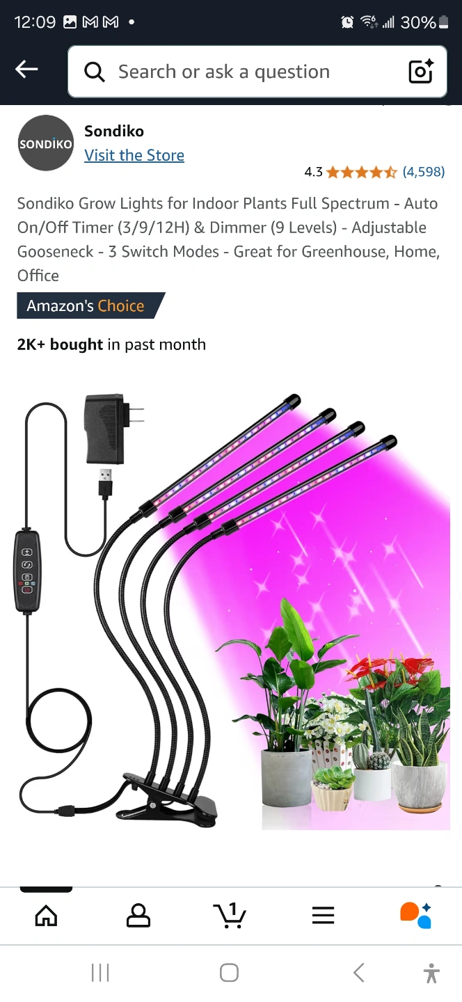 Sondiko LED Grow Light - 4 Head Gooseneck Plant Lamp