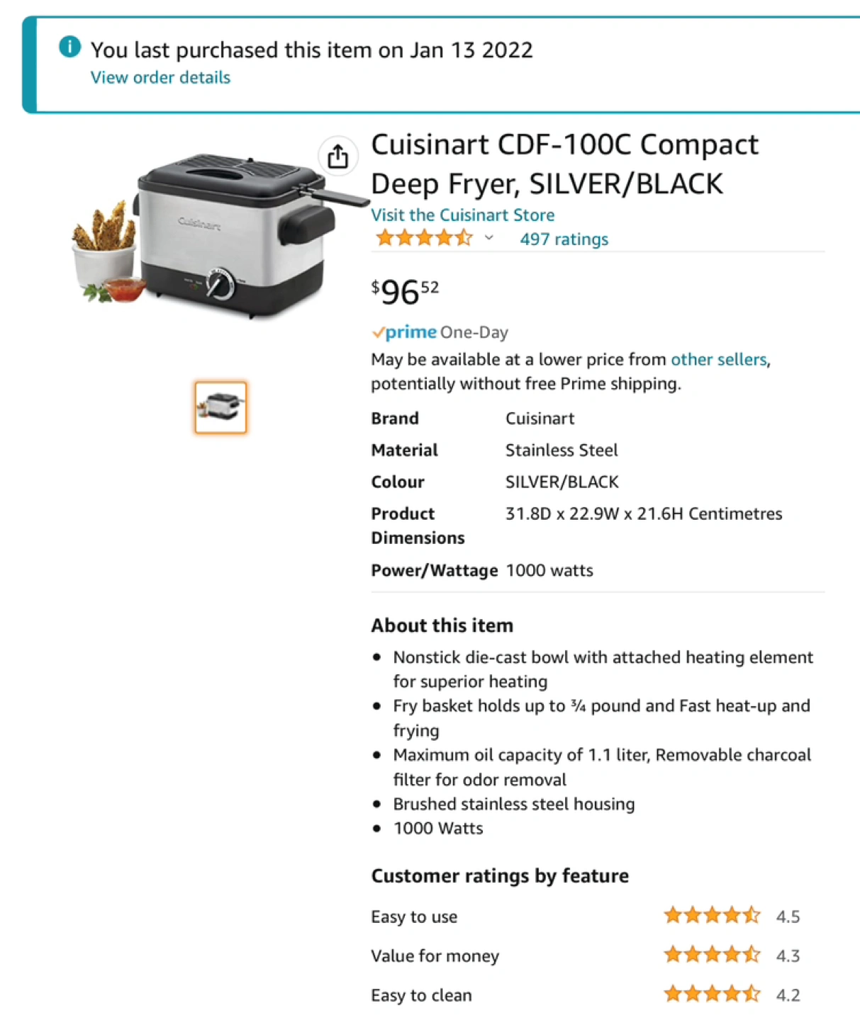 Purchased for $96 in Jan 2022 and used only a few times. Makes great French Fries - in excellent condition Instructions included.