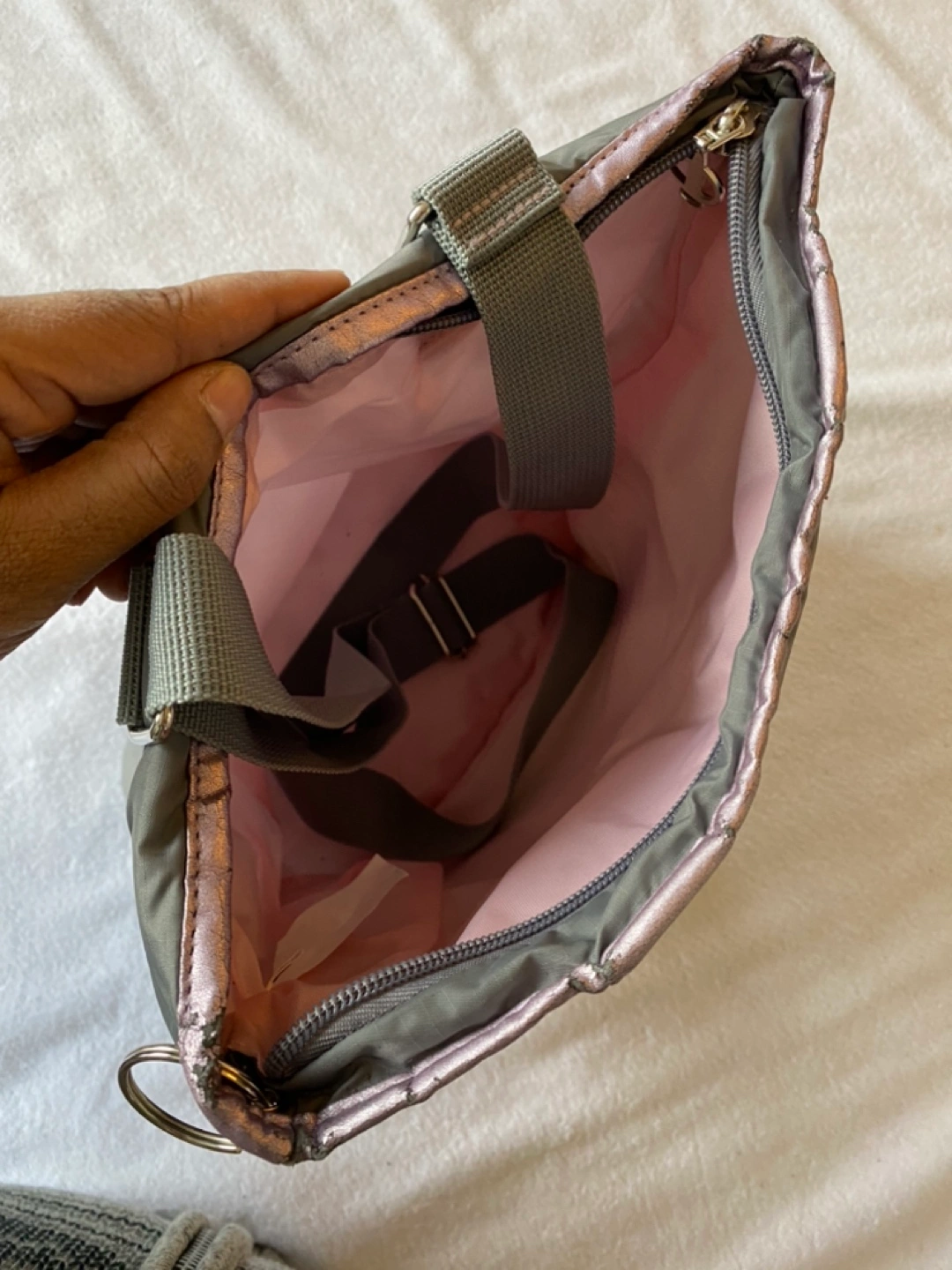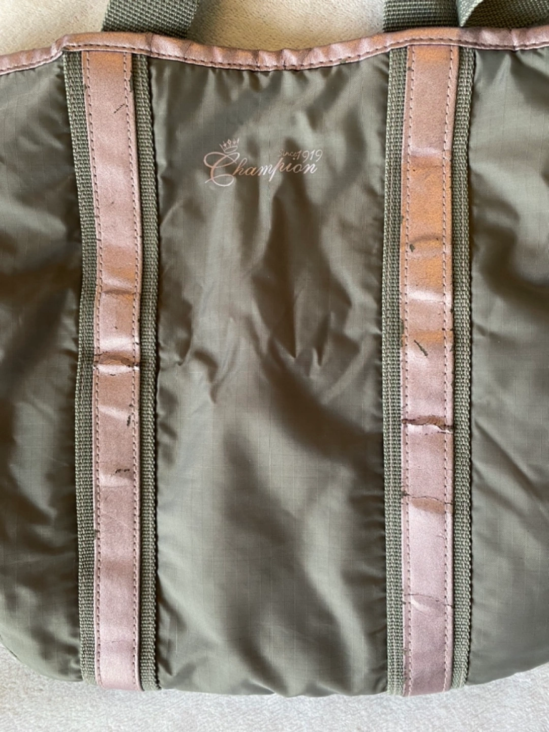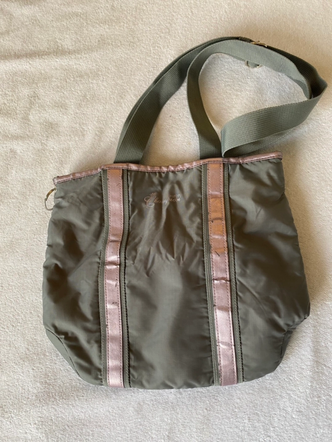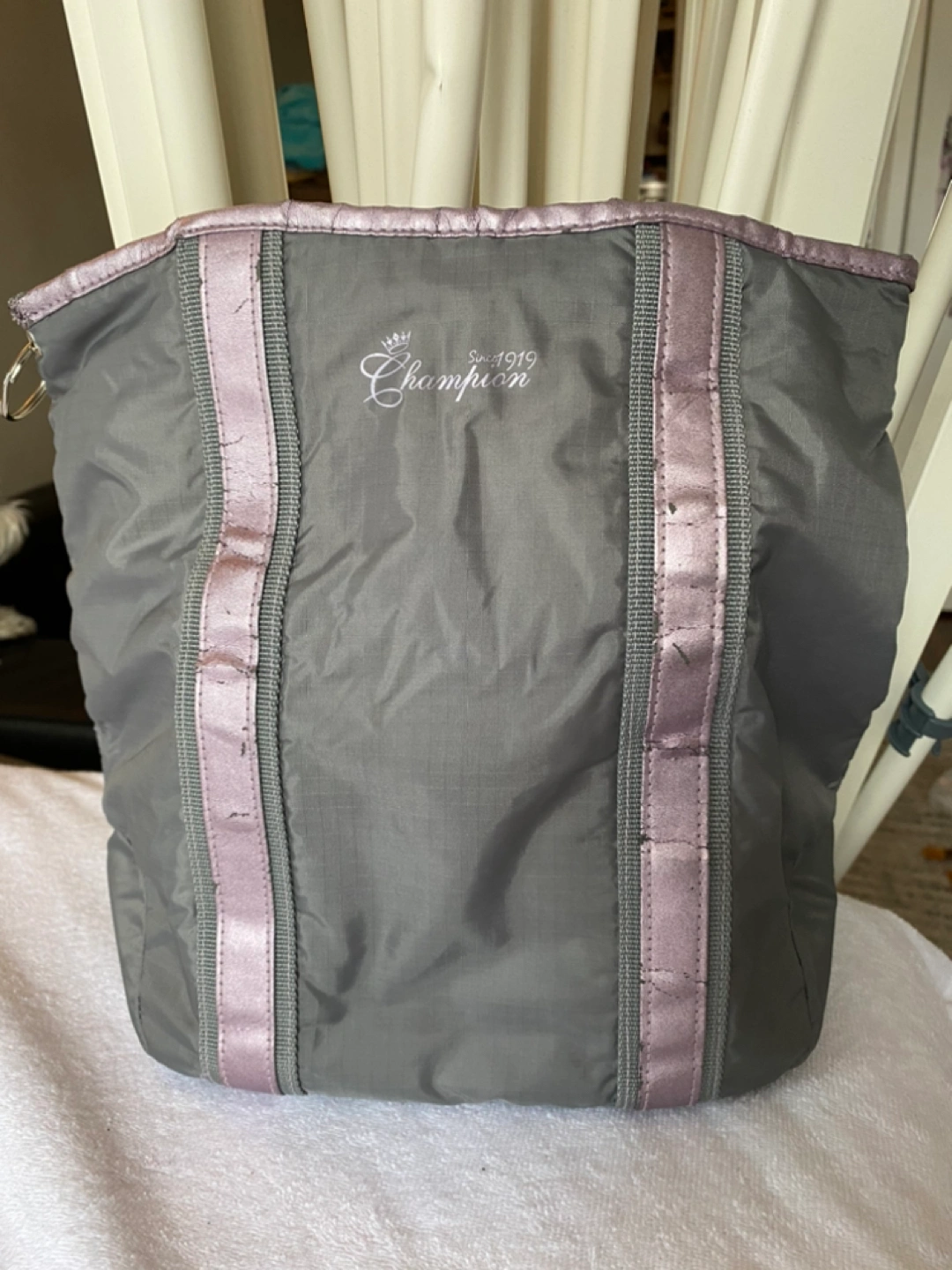 Vintage Champion pink & gray vertical side bag.