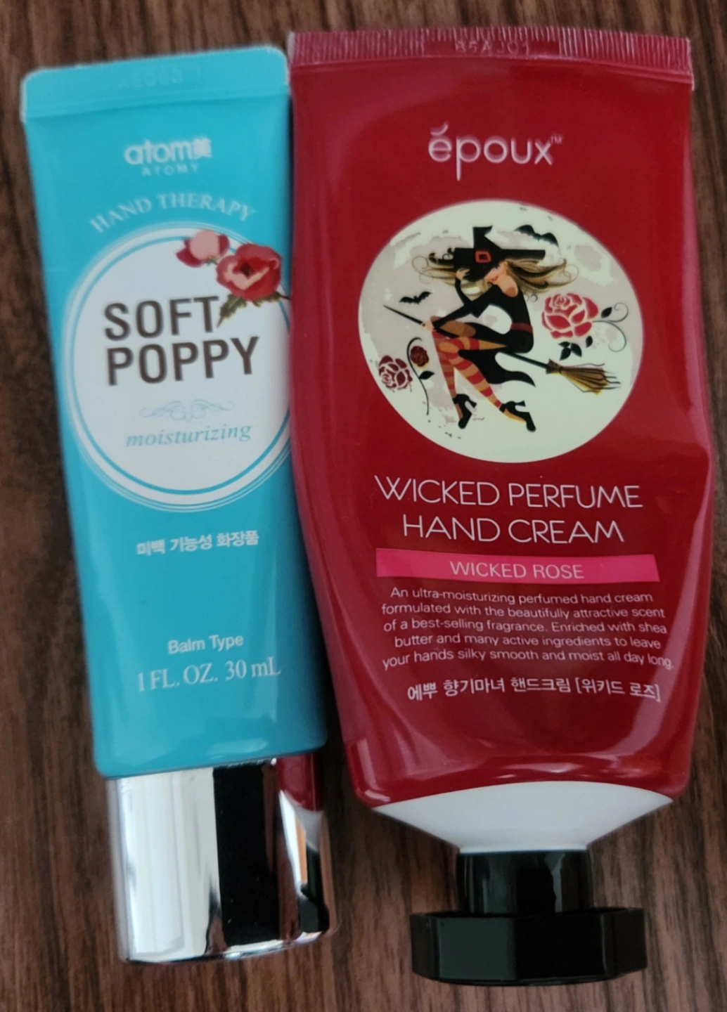 Atomy hand cream, soft poppy scent, moisturizing balm.