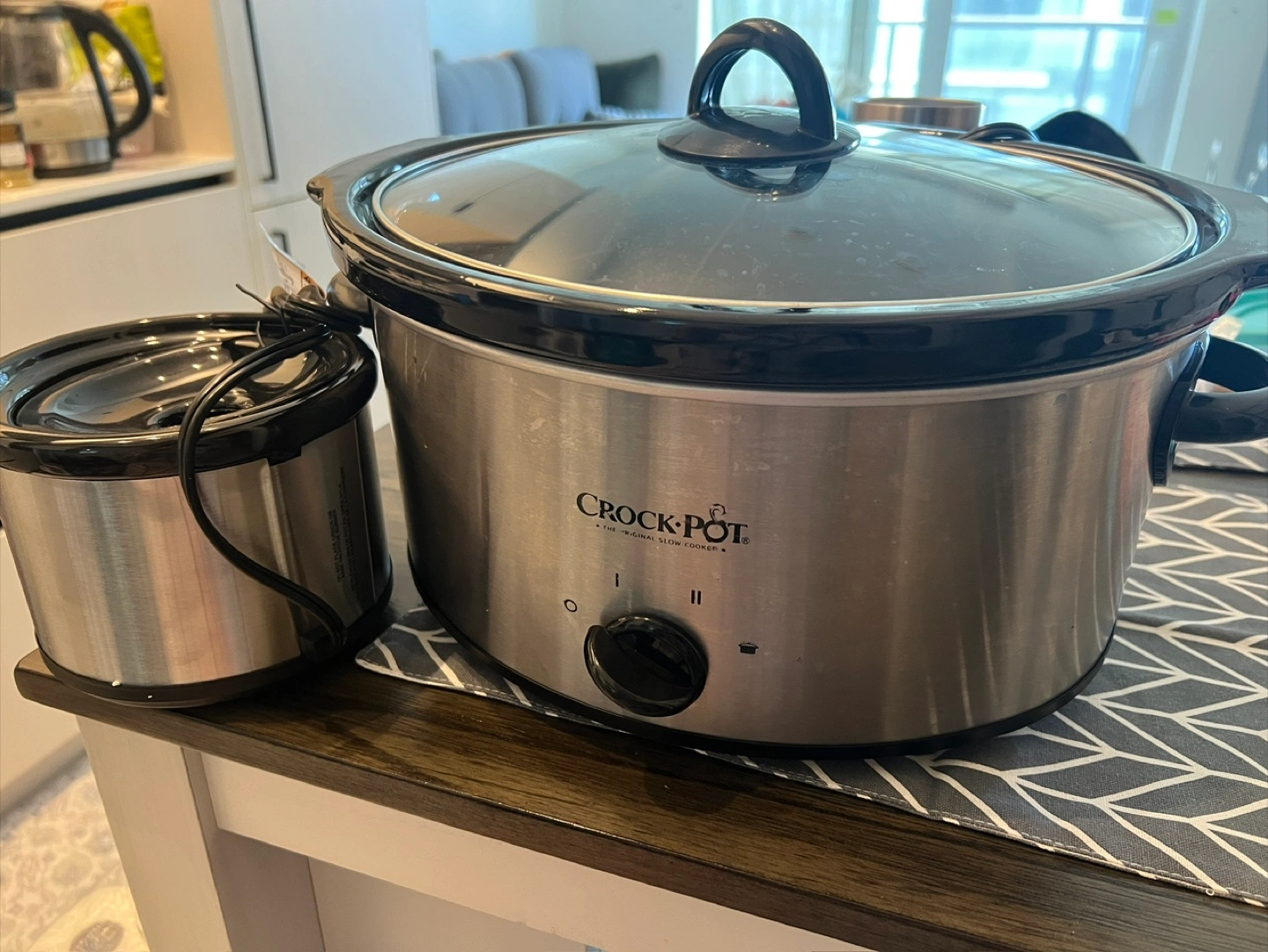 Stainless steel slow cooker. Includes a smaller Crock-Pot Little Dipper. Great for cooking meals slowly.