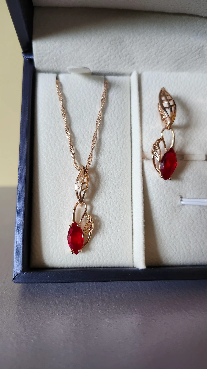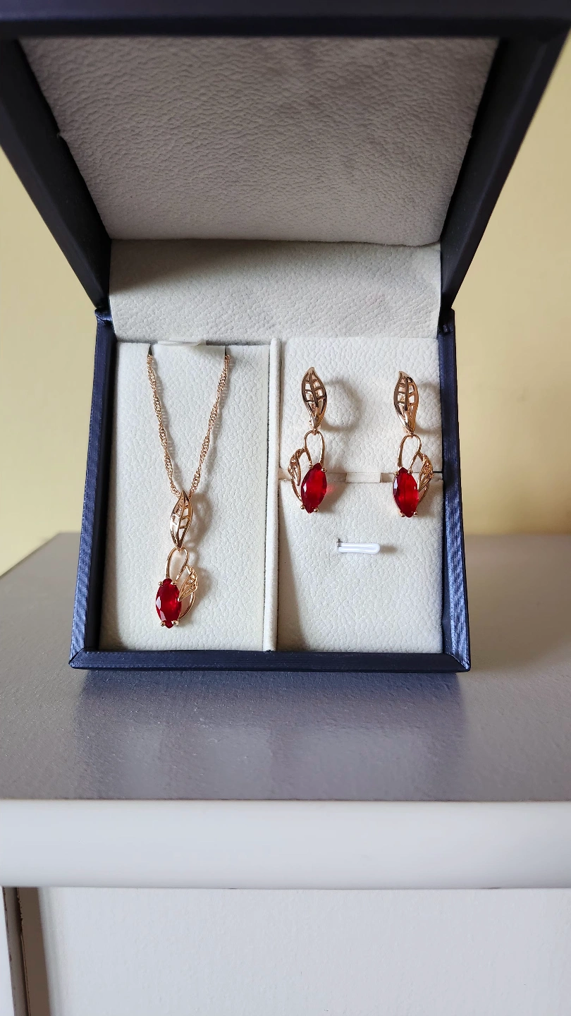 585RG(14K) Rolled Gold Red Drop Earrings & Necklace Set