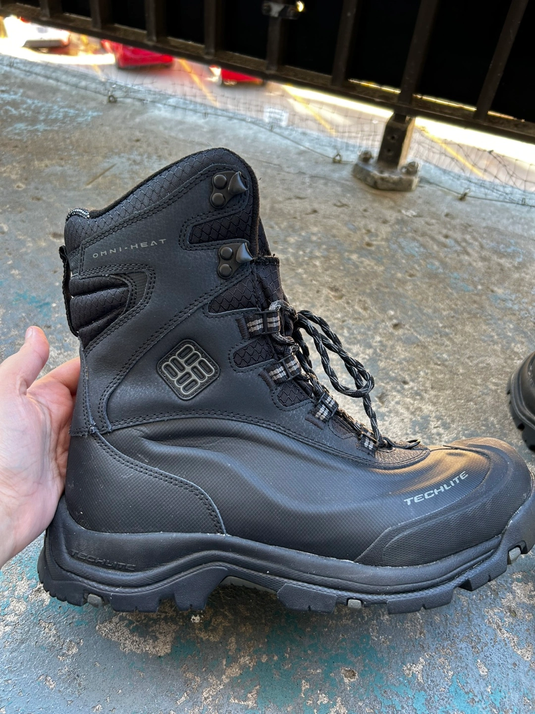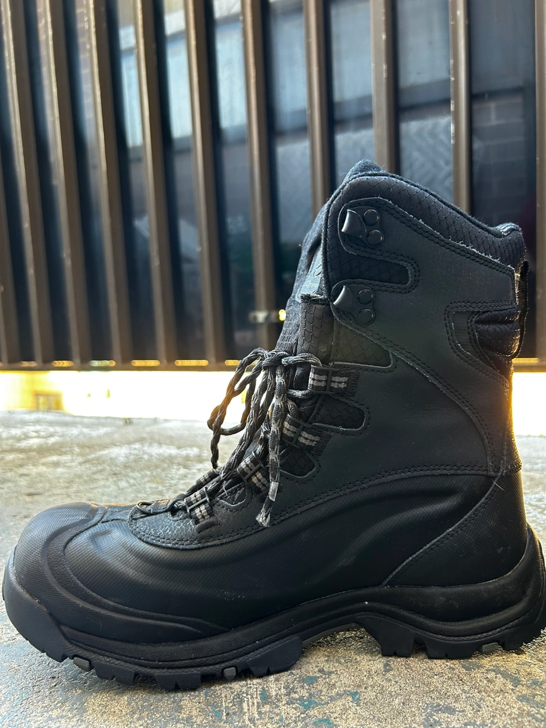 93Men's black winter boots, Omni-Heat and Techlite features. Hard protective boots, great for working outside during winters.