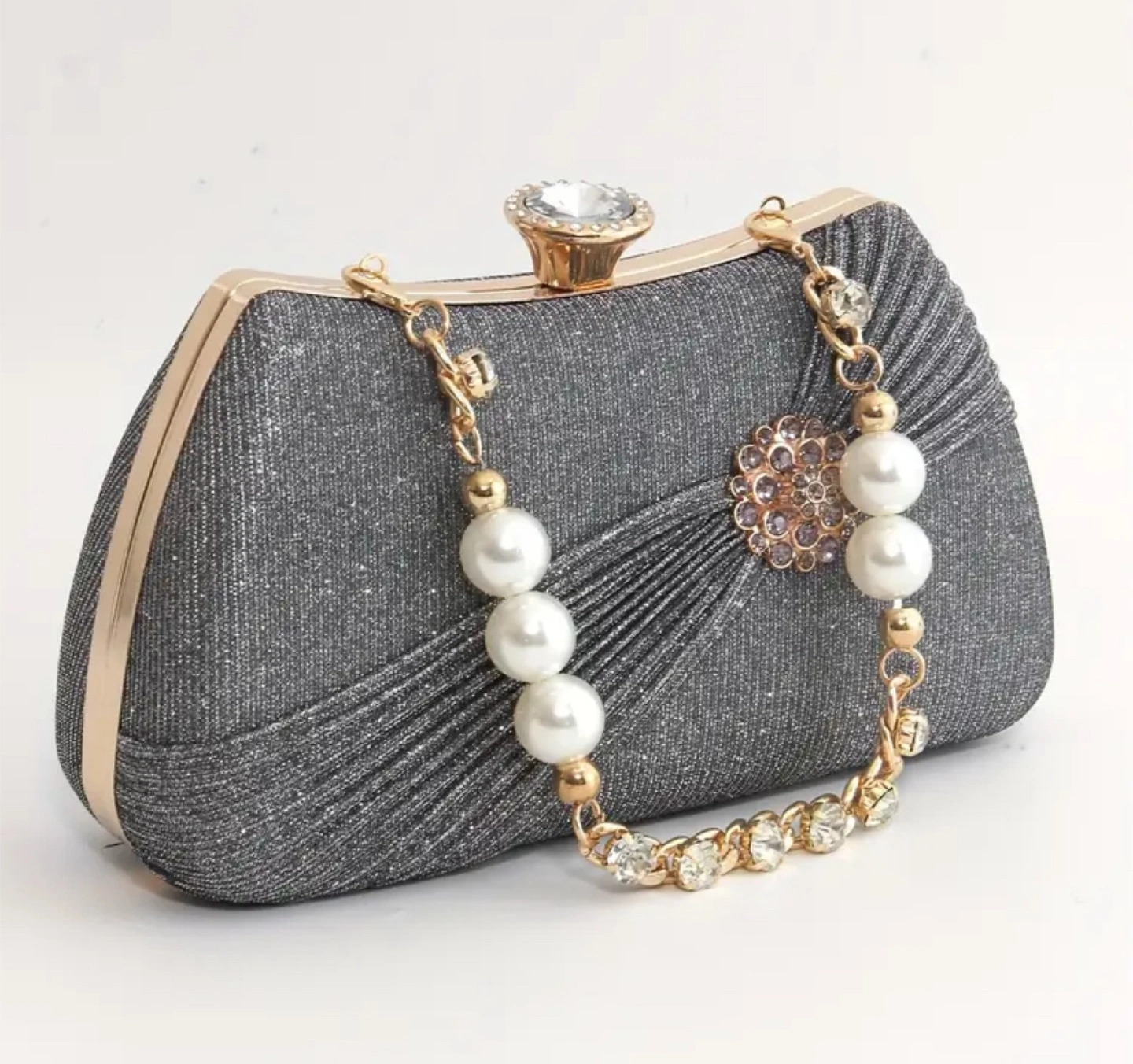 Gorgeous evening clutches. Various colours and styles available. Rhinestone and pearl embellishments. Perfect for weddings, galas, or special occasions.