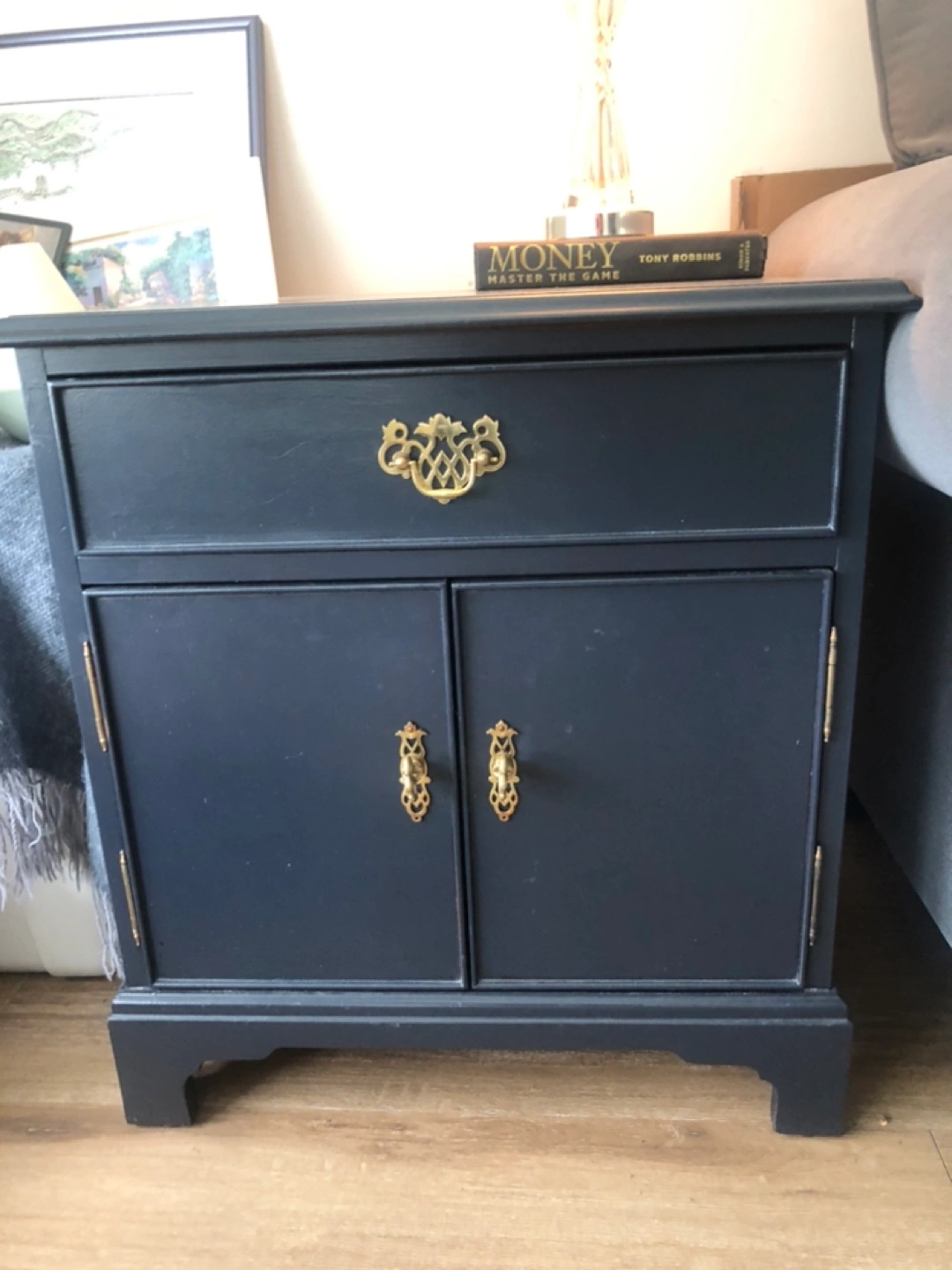 Navy Blue Nightstand with Gold Hardware