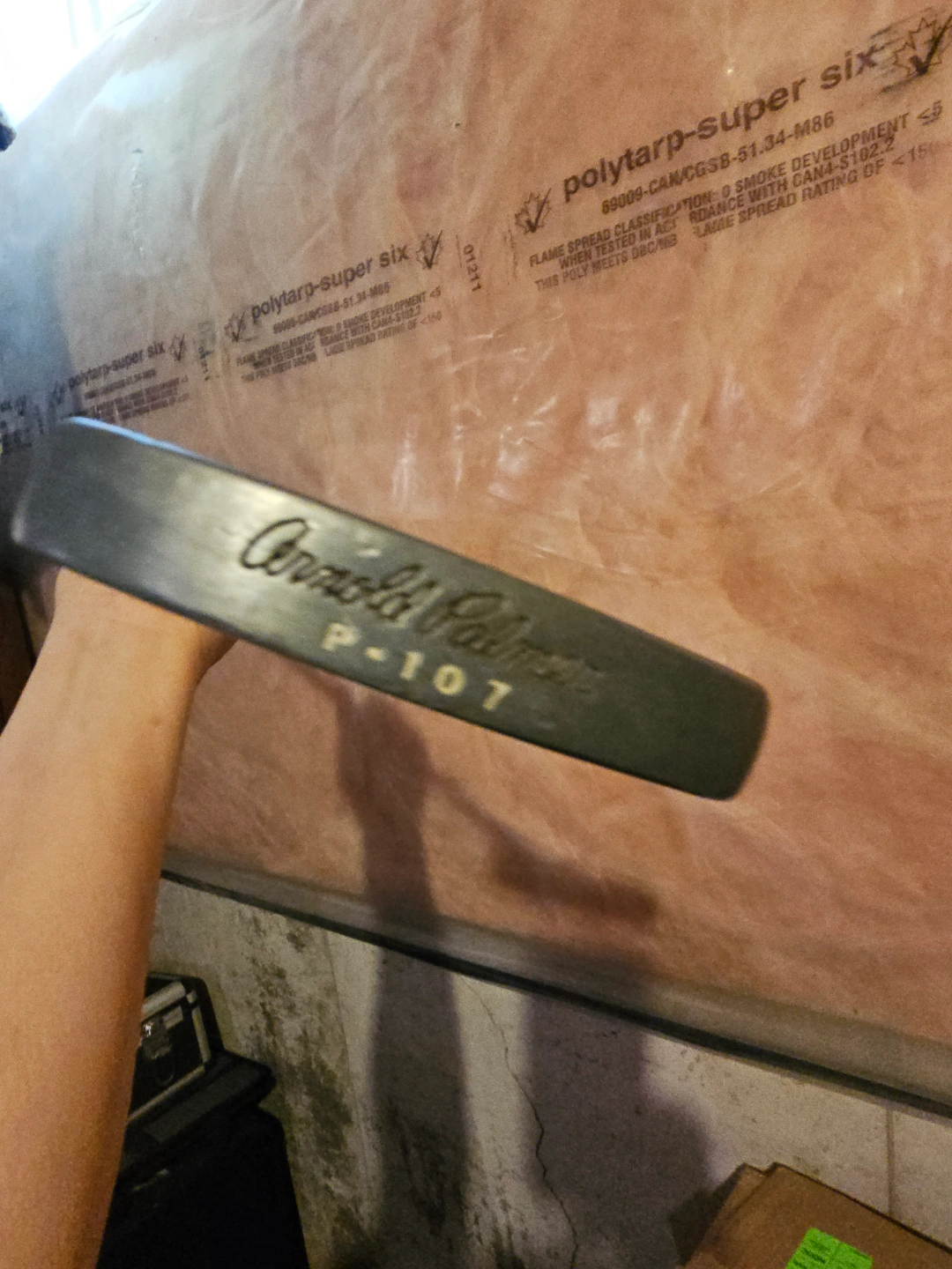 Used Arnold Palmer P-107 putter. Black finish. Lamkin grip. Excellent condition.