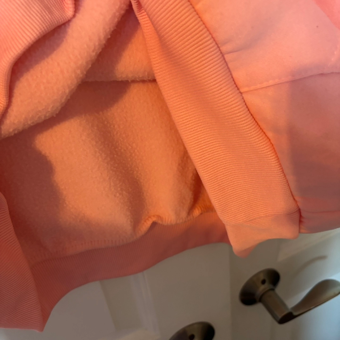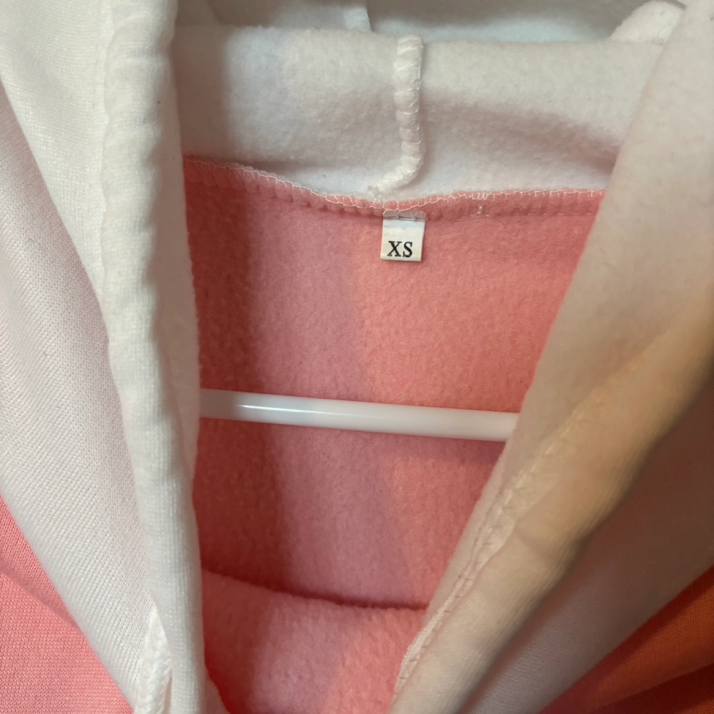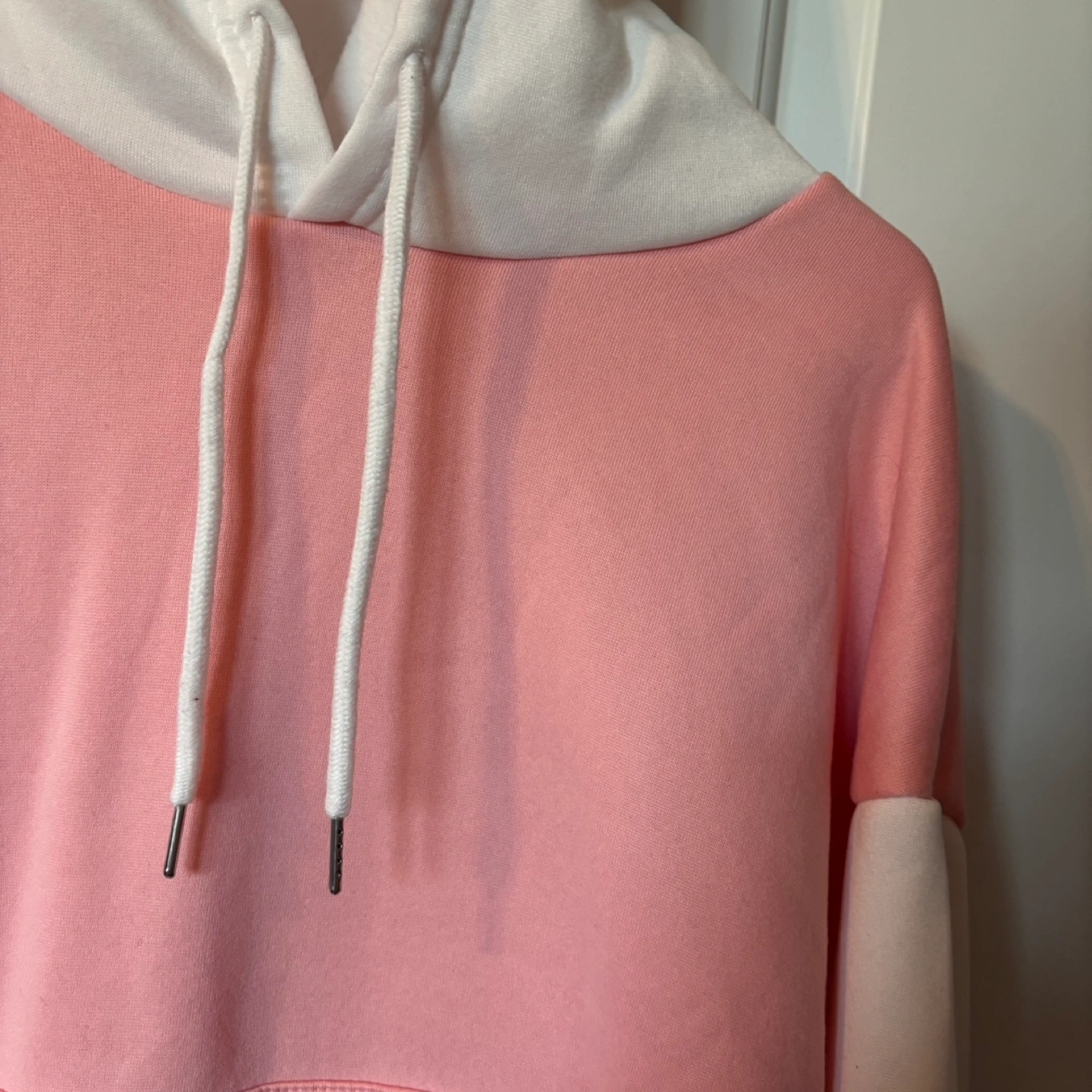Women's XS pink and white colorblock hoodie. Super soft and comfortable. Features a kangaroo pocket and white drawstring.