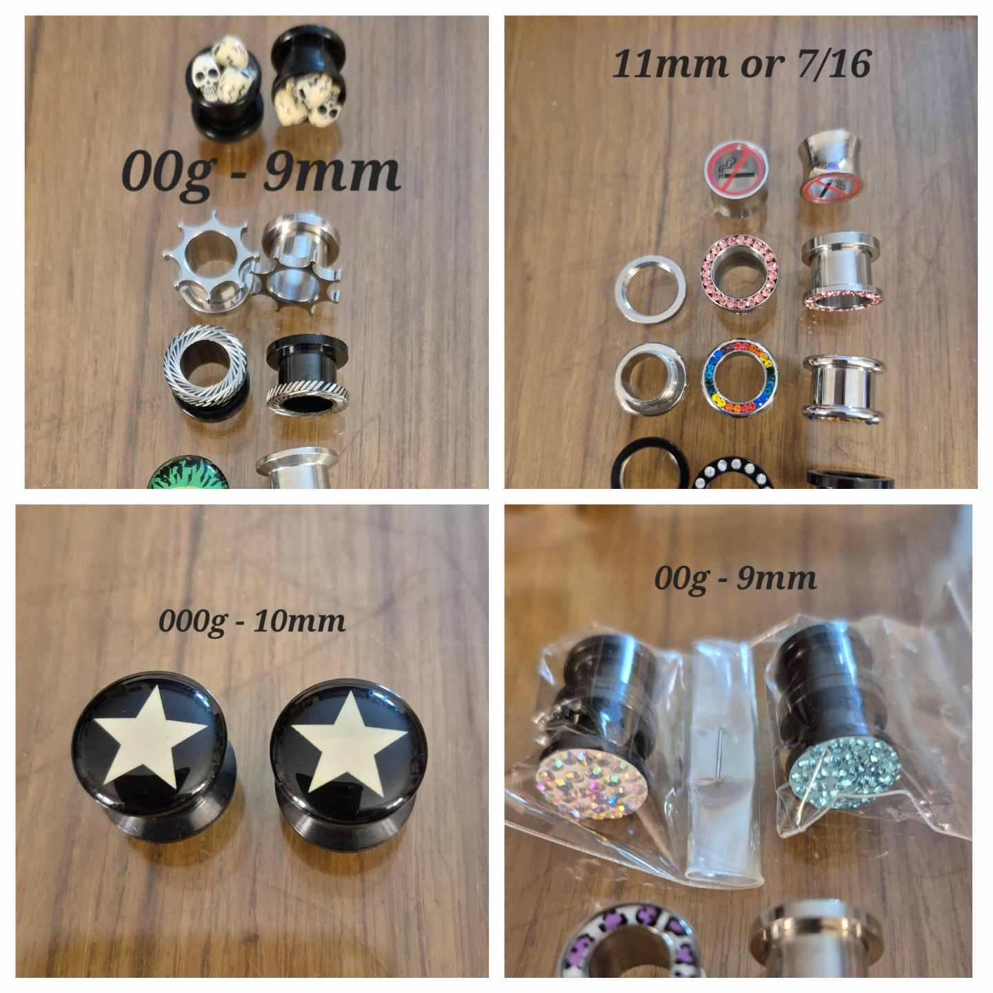 Various plugs/stretchers. Ranging from 9mm - 11mm