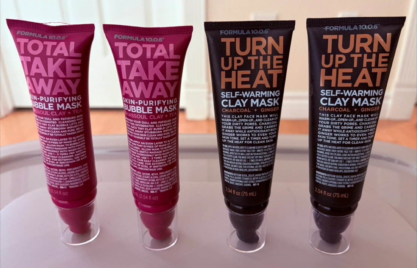 $7 Each Tube of Formula 10.0.6 face masks. Two Total Take Away skin-purifying bubble masks and two Turn Up the Heat self-warming charcoal clay masks.