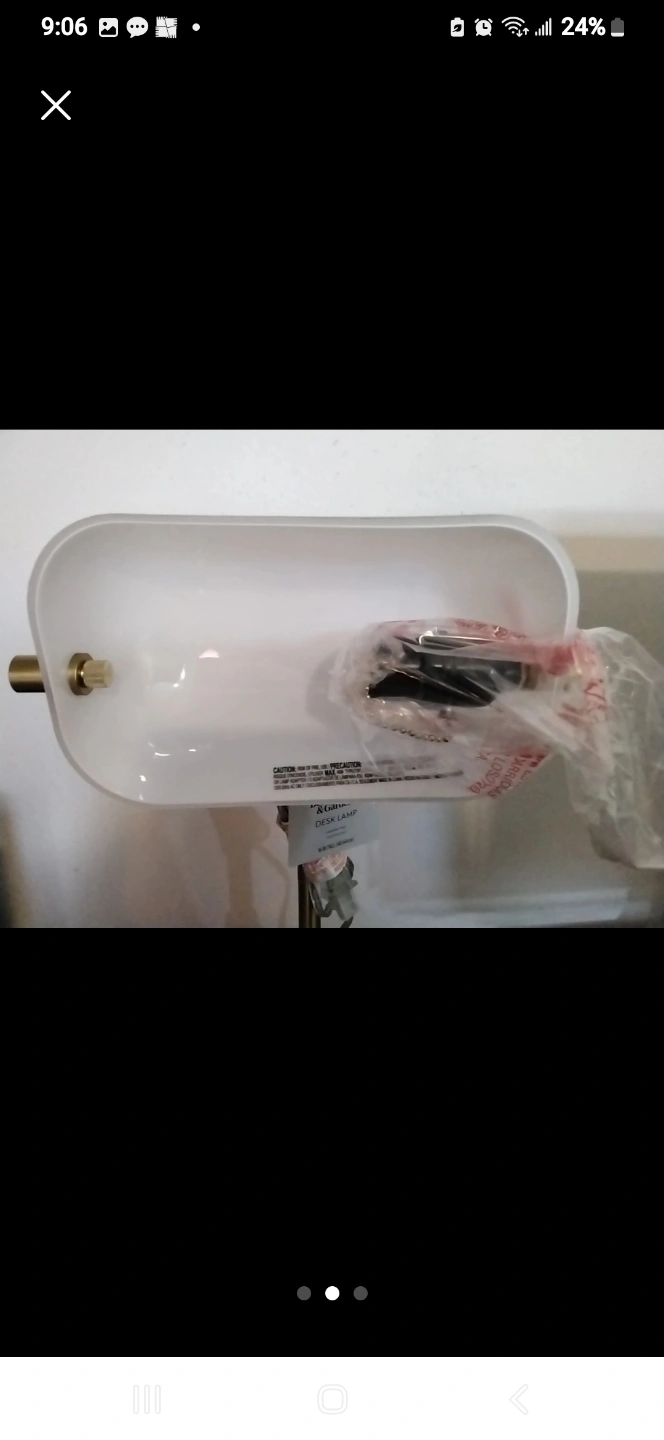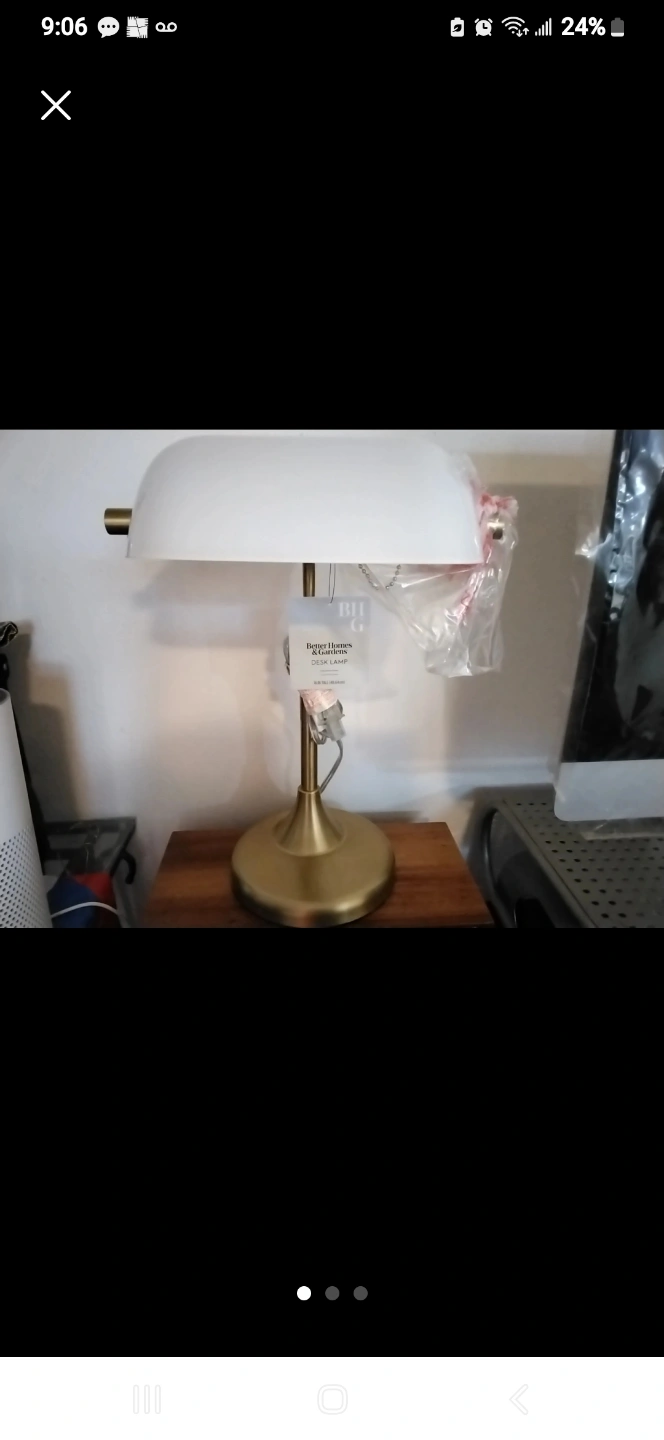 NEW! HOMES & GARDEN 16" DESK LAMP *Brand New with original packaging (no box) *Retails at Walmart for $39 *White hood and brass hardware *16" tall *great for office or as a night stand