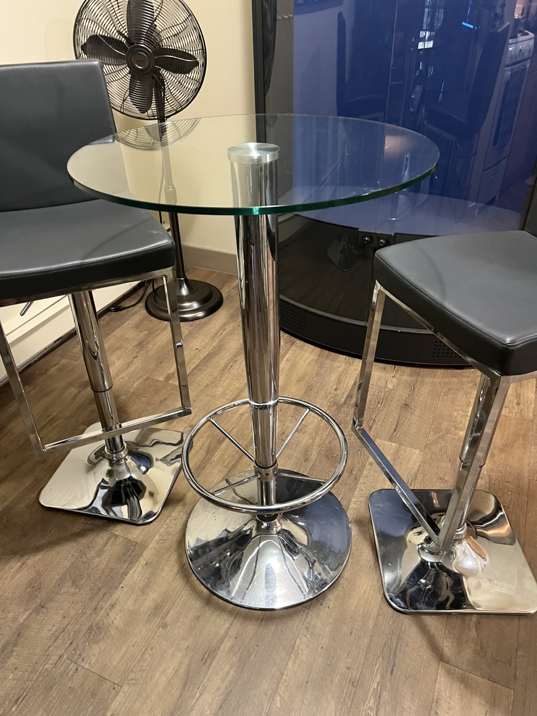 1 / 51 / 5Buy & SellBistro Table Set with Two Bar StoolsBistro Table Set with Two Bar Stools$82Modern pub table set. Includes a round glass tabletop and two gray cushioned bar stools.ConditionGoodWHERE TO MEETCheck LocationView MapSELLERverifiedYanniBlundell38035 reviews2 chats·4 favorites·87 viewsSEND CHAT TO SELLERHi Yanni! I’m interested in your listing.Hi Yanni! I’m interested in your listing.Get the Karrot app to chatSign In to chat